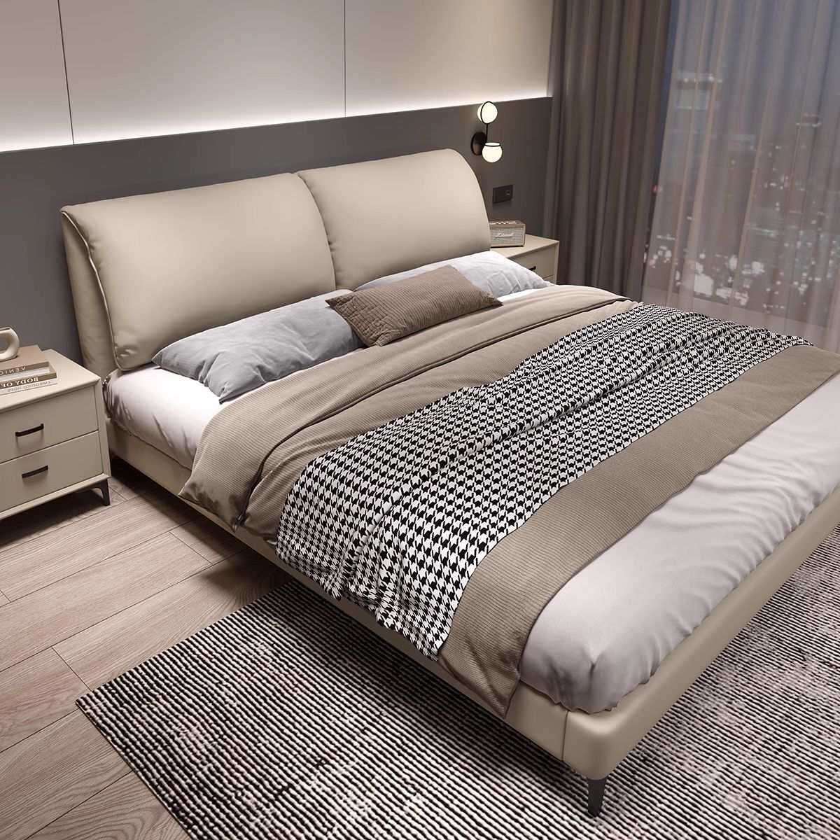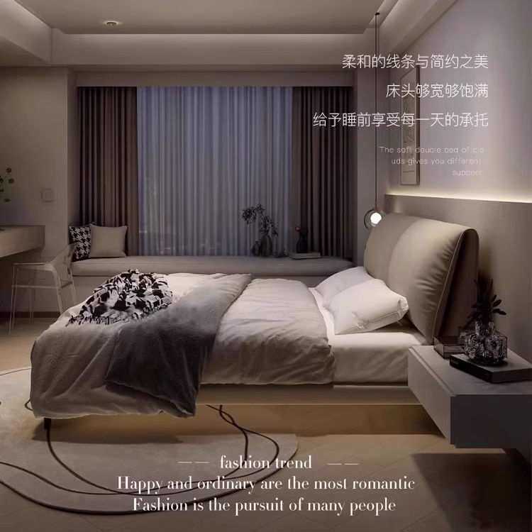 大象耳朵床轻奢1.8米双人床现代意式简约主卧1.5米婚床皮艺床