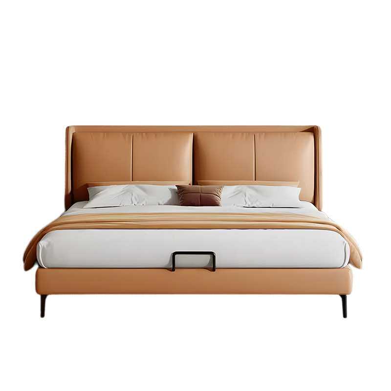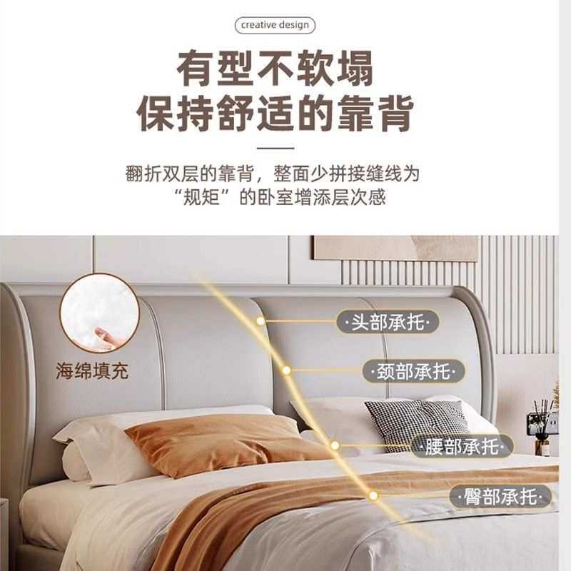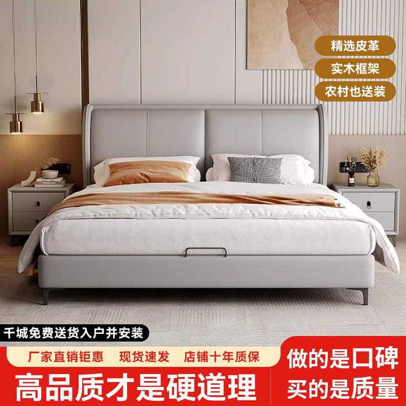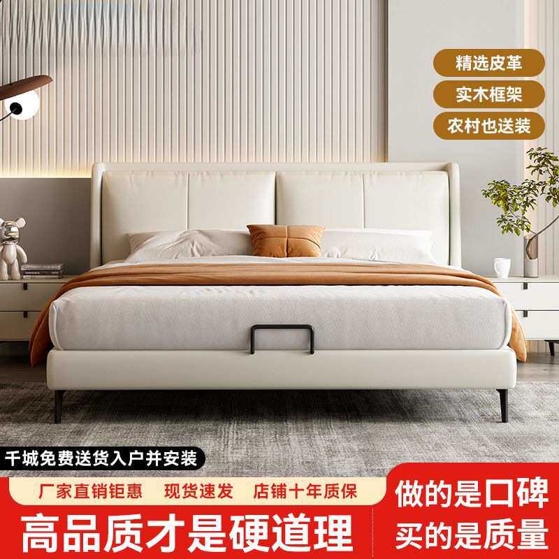 意式轻奢主卧床现代简约家用1.5米1.8米双人床纳帕真皮婚床皮艺床