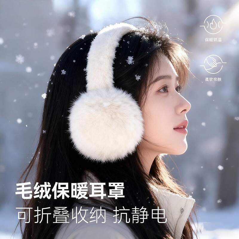 韩版可爱大号毛绒耳捂子保暖防冻护耳冬季耳罩女耳套耳暖白色折叠