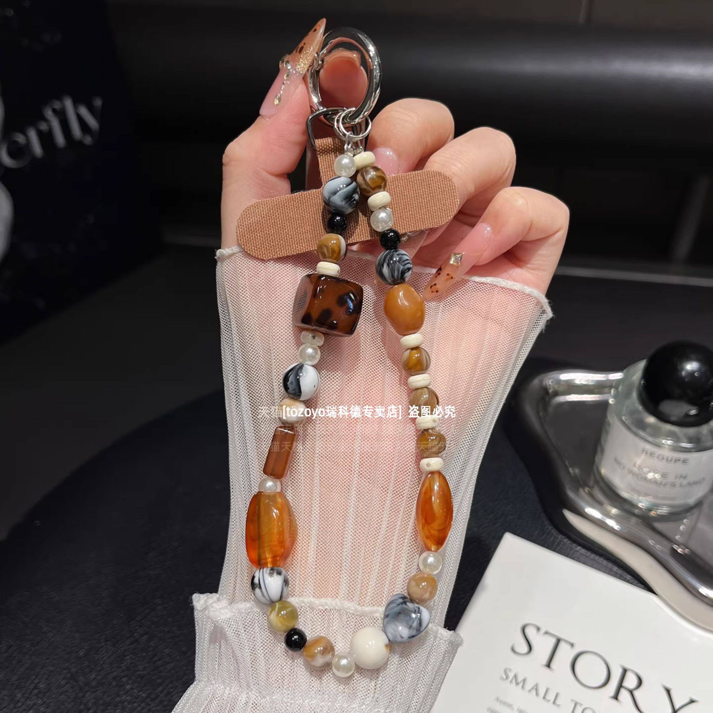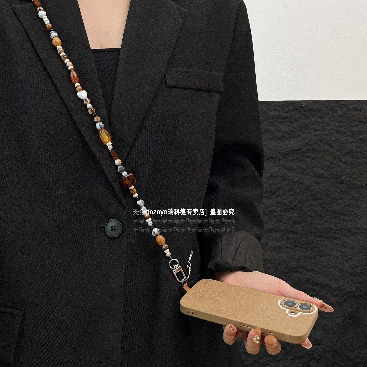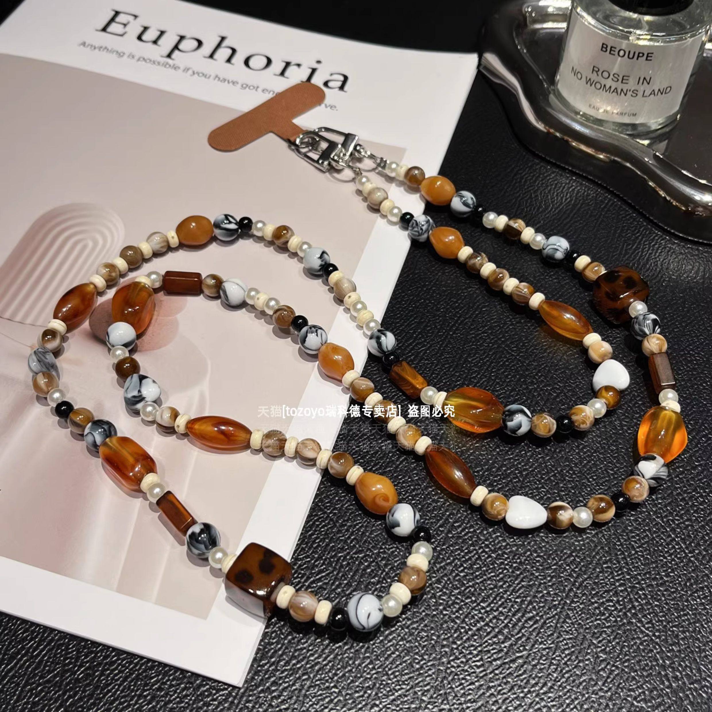 复古美拉德手机链棕色异形串珠挂链手腕式手链斜挎背带时尚高级感小众链条女背挎防丢挂饰包包相机钥匙挂件壳
