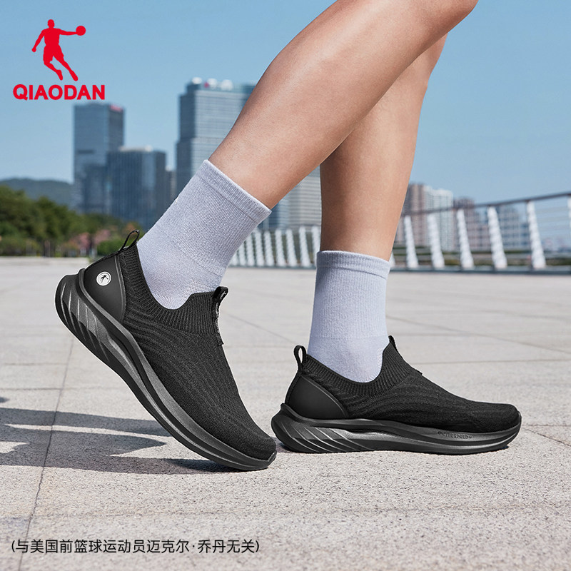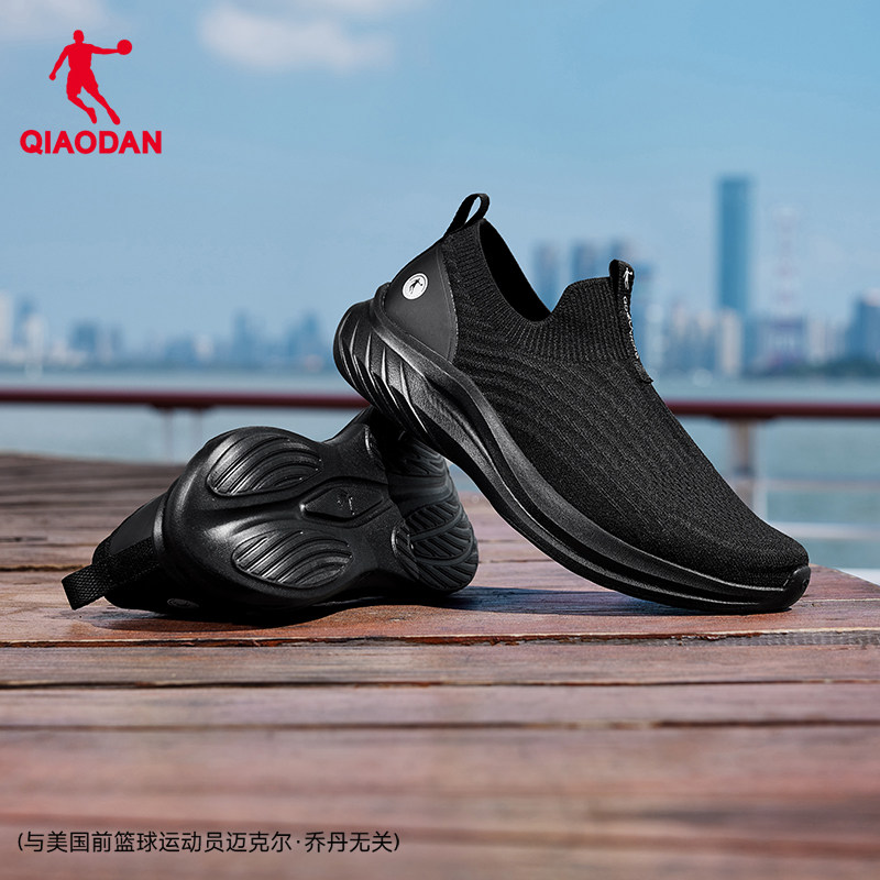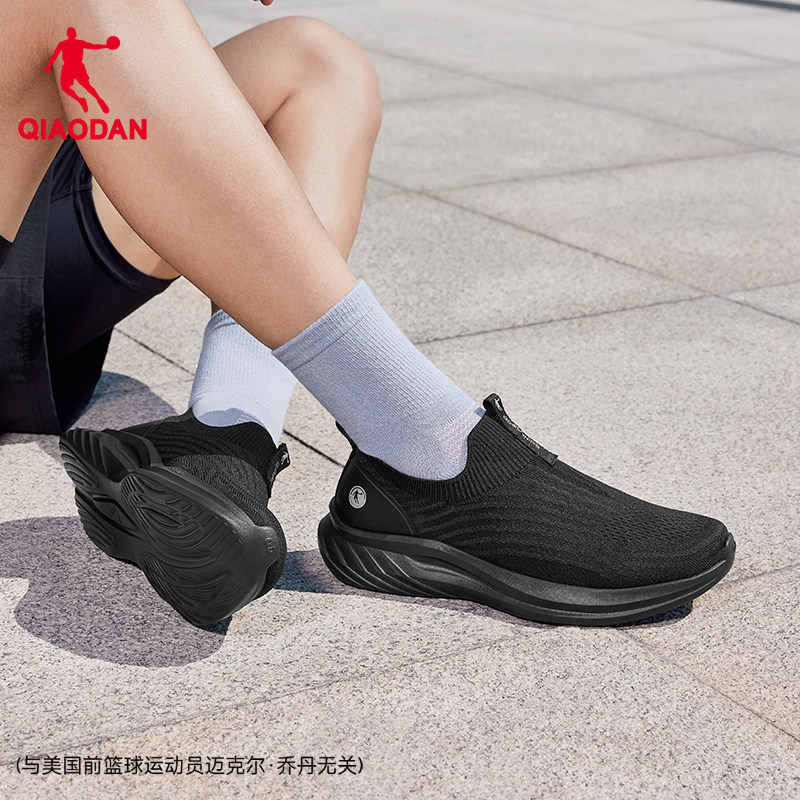 乔丹男鞋一脚蹬跑步运动鞋春季黑色懒人鞋爸爸软底透气健步休闲鞋