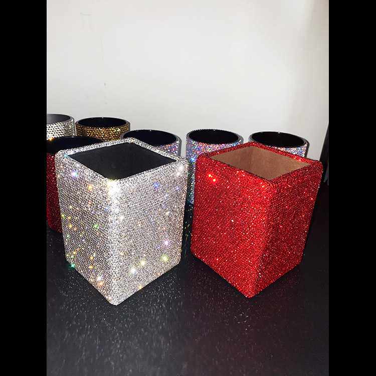 热销镶钻笔筒 厂家直销时尚陶泥粘钻化妆刷桶 贴钻美妆工具收纳筒