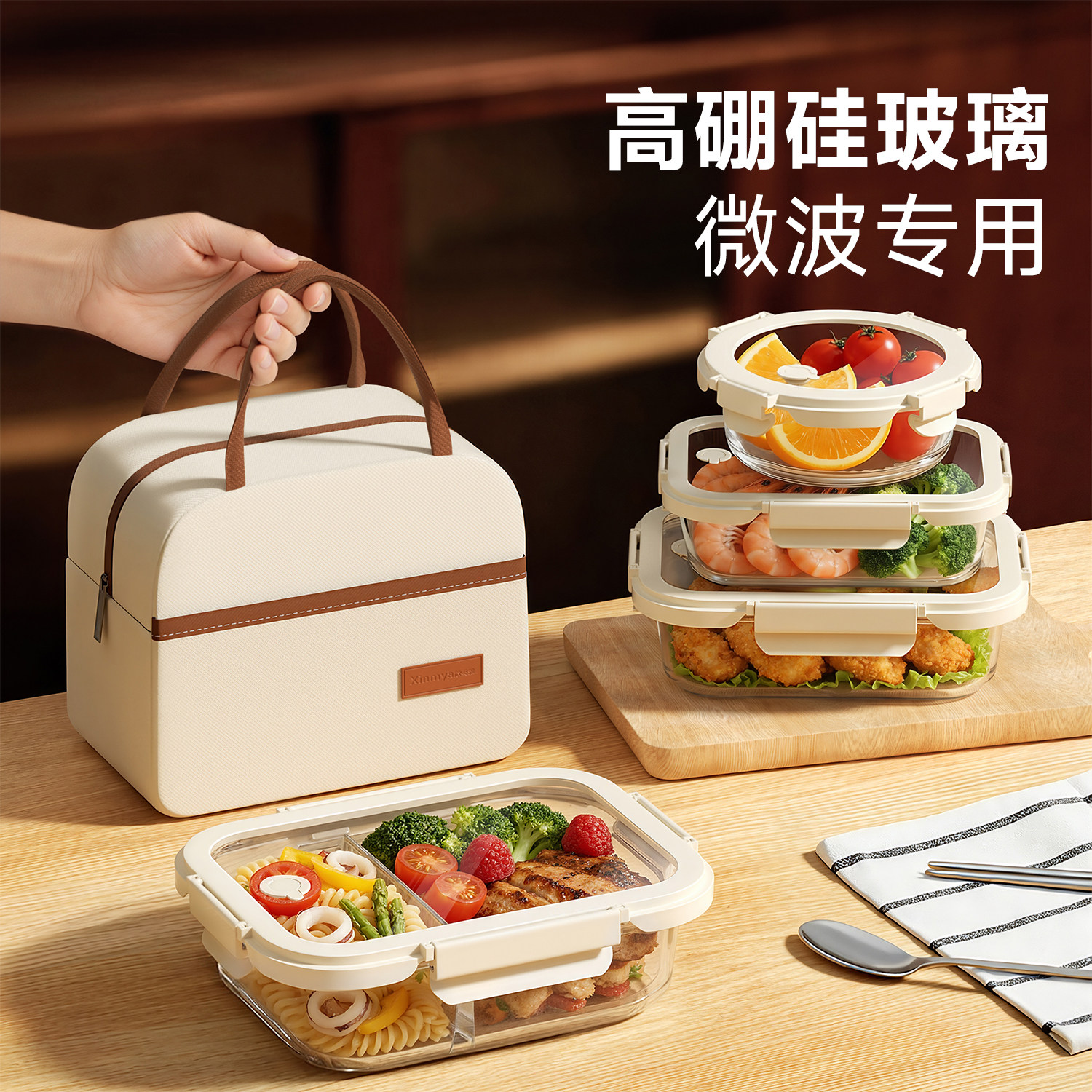玻璃饭盒微波炉加热专用碗上班族带饭餐盒食品保鲜盒水果便当盒