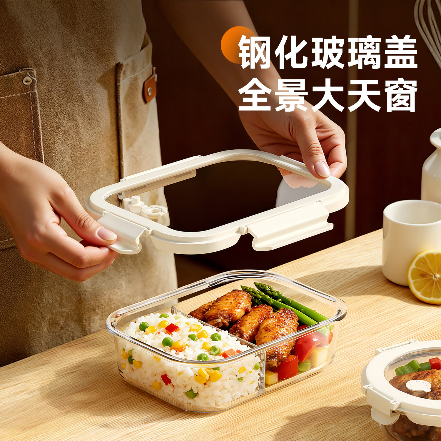 玻璃饭盒微波炉加热专用学生上班族带饭餐盒保鲜盒分隔密封便当碗