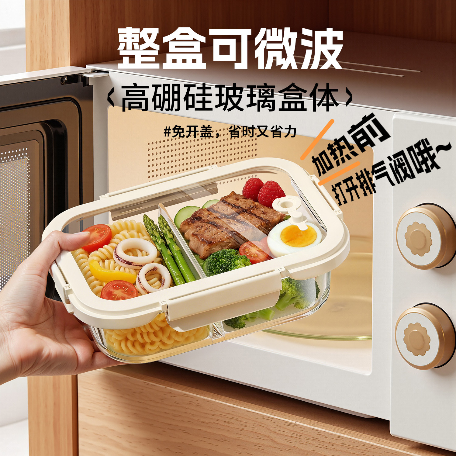 【李佳琦直播间】双枪玻璃饭盒微波炉加热专用碗分隔便当盒保鲜盒
