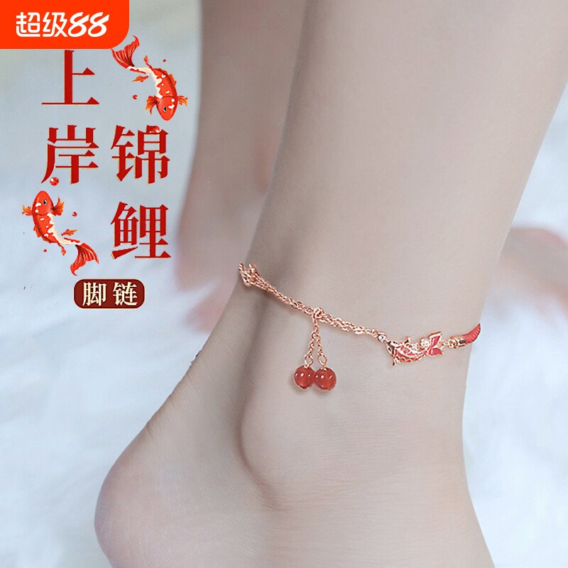 锦鲤脚链女士2026新款小众精致气质红绳流苏洗澡不用摘独特足链镯