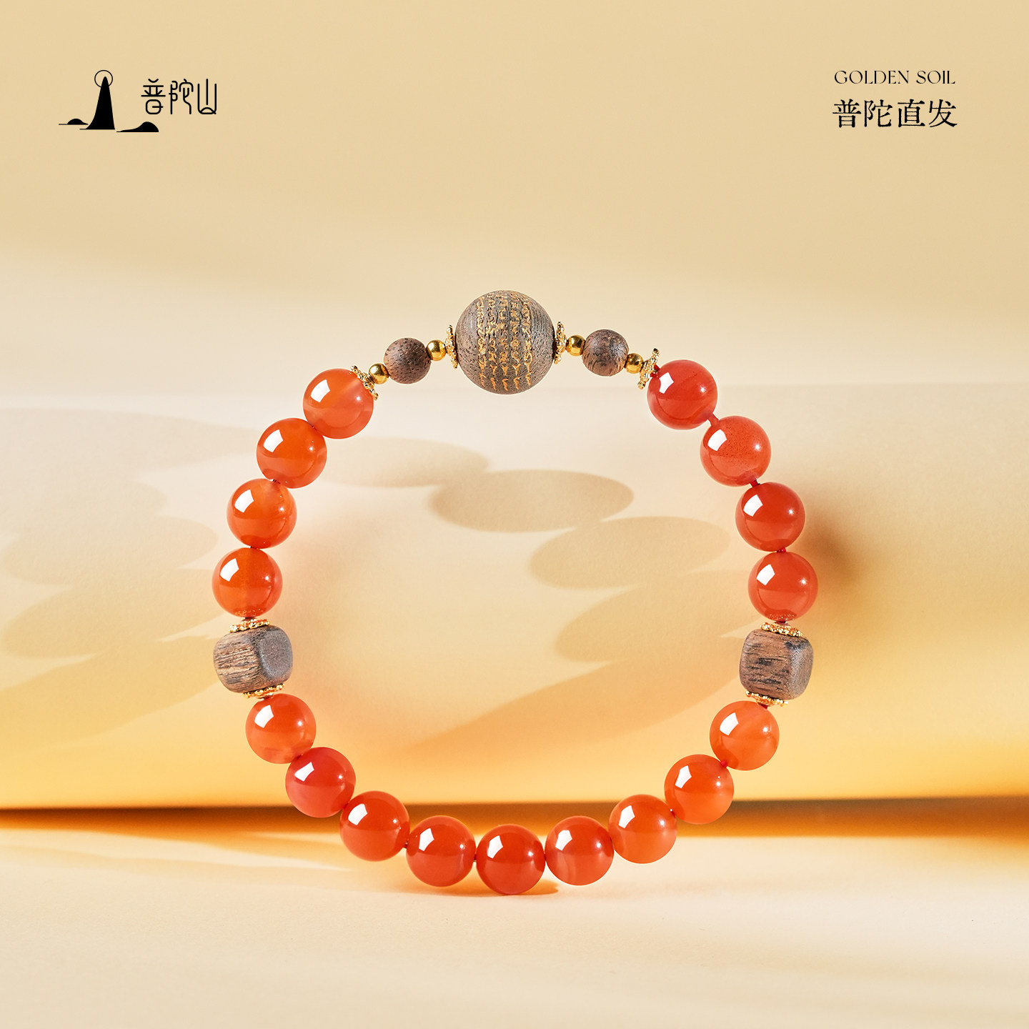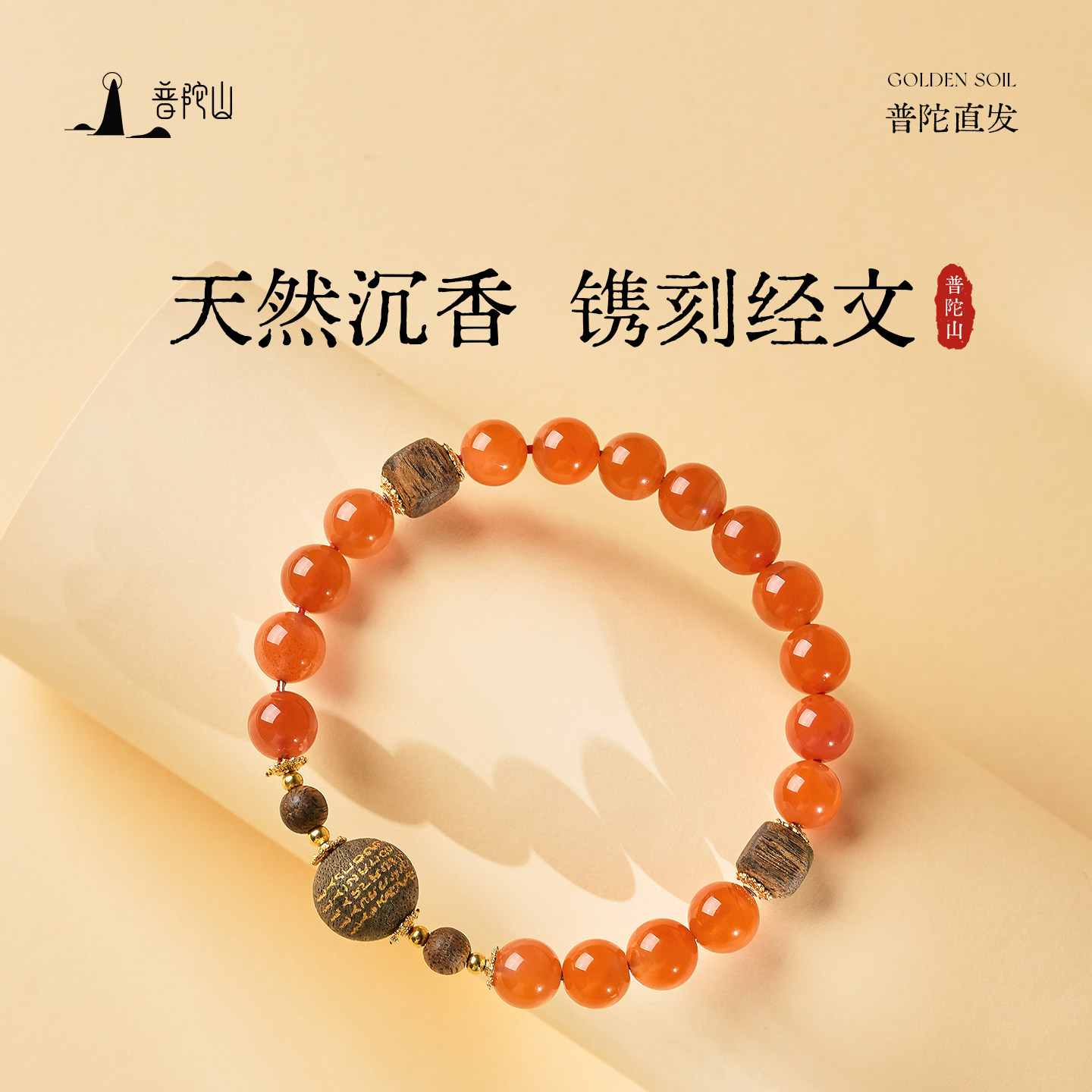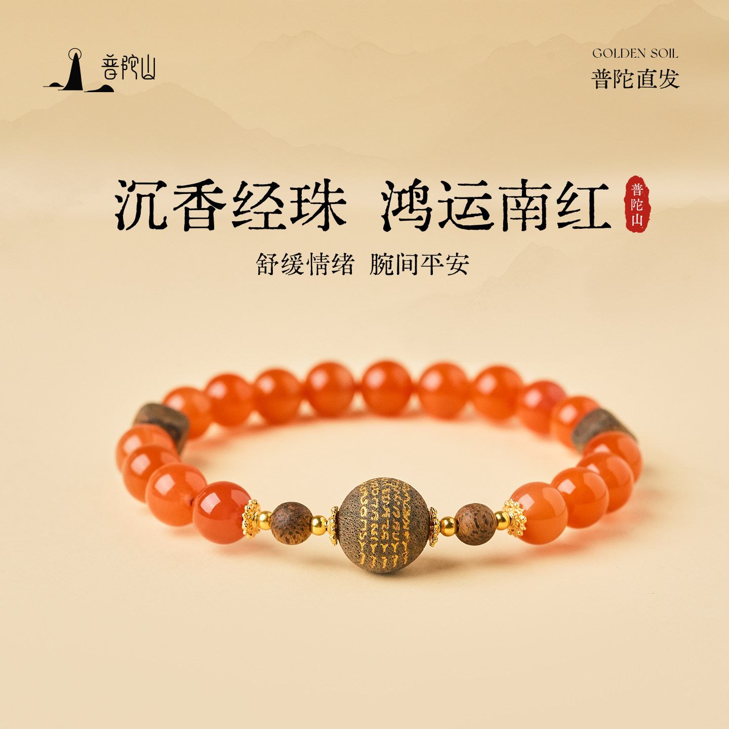 普陀山南红手串沉香经珠925银五路财神文创手链高级感新年礼物