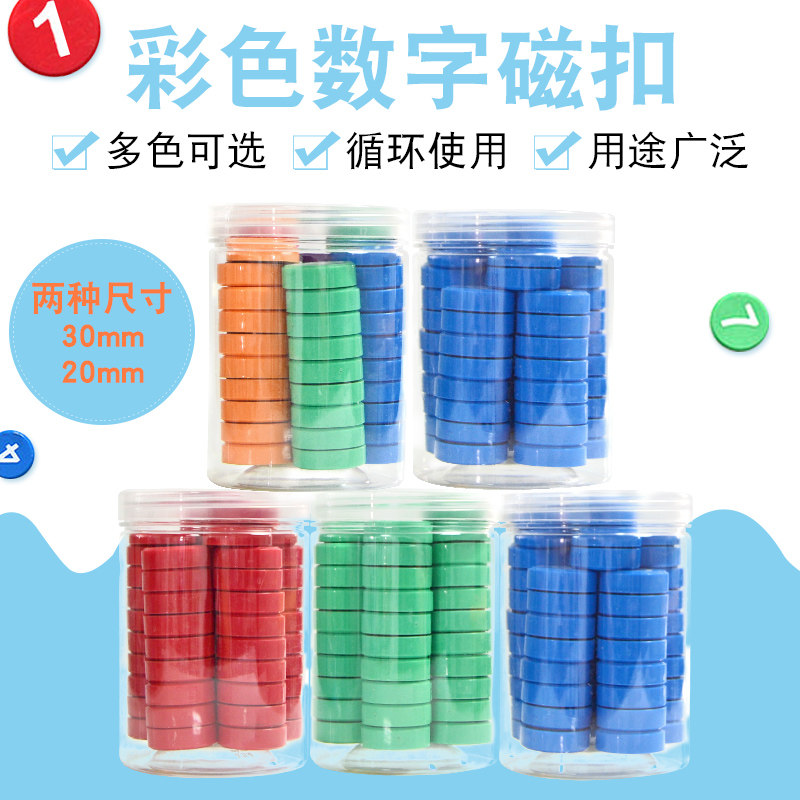 黑板磁力吸铁石1-50数字圆形磁粒冰箱强磁贴彩色教学办公白板磁吸