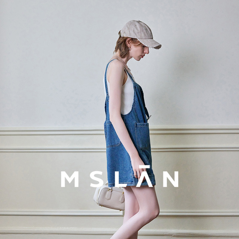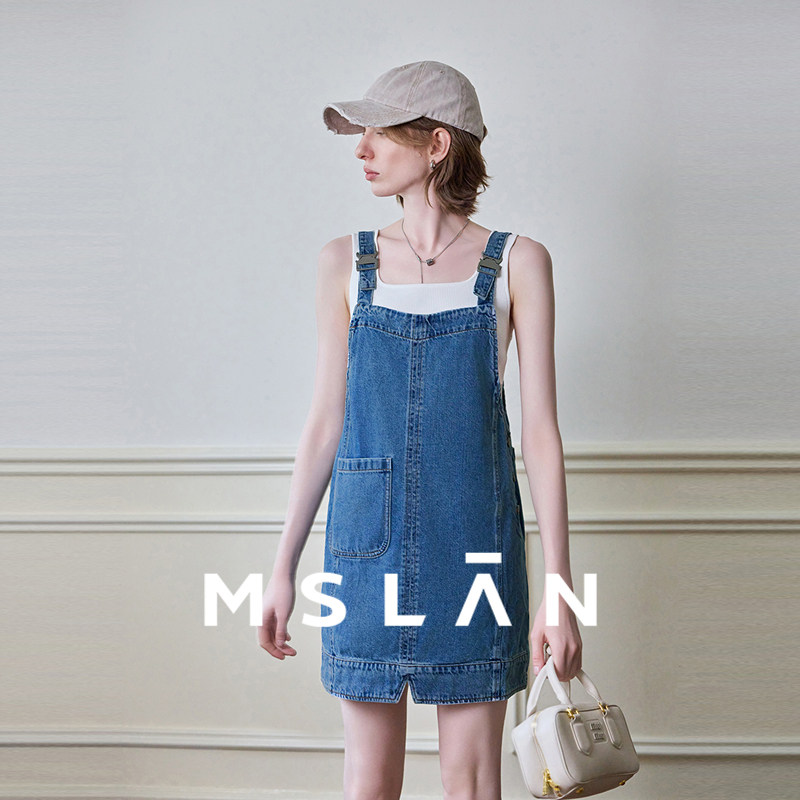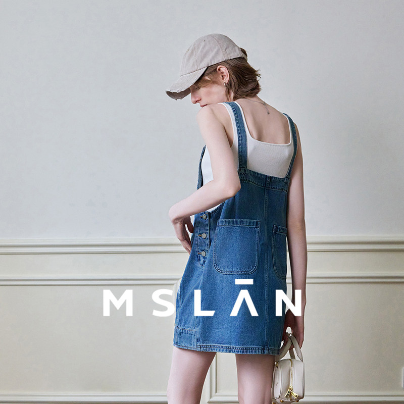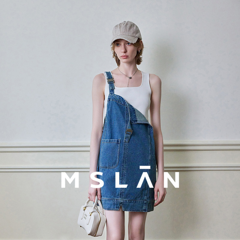 MSLAN商场同款减龄学院风单边口袋背带裙MFCE5103