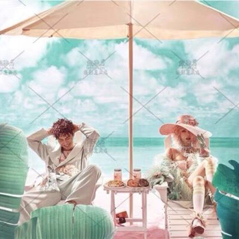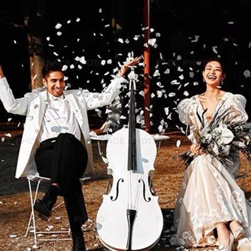 新款婚纱道具户外白色遮阳伞三亚海边时尚摄影旅拍大提琴桌椅套装