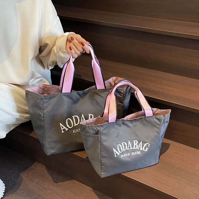 帆布包女多巴胺撞色手提袋带娃小号饭盒包便携便当手提包妈咪包