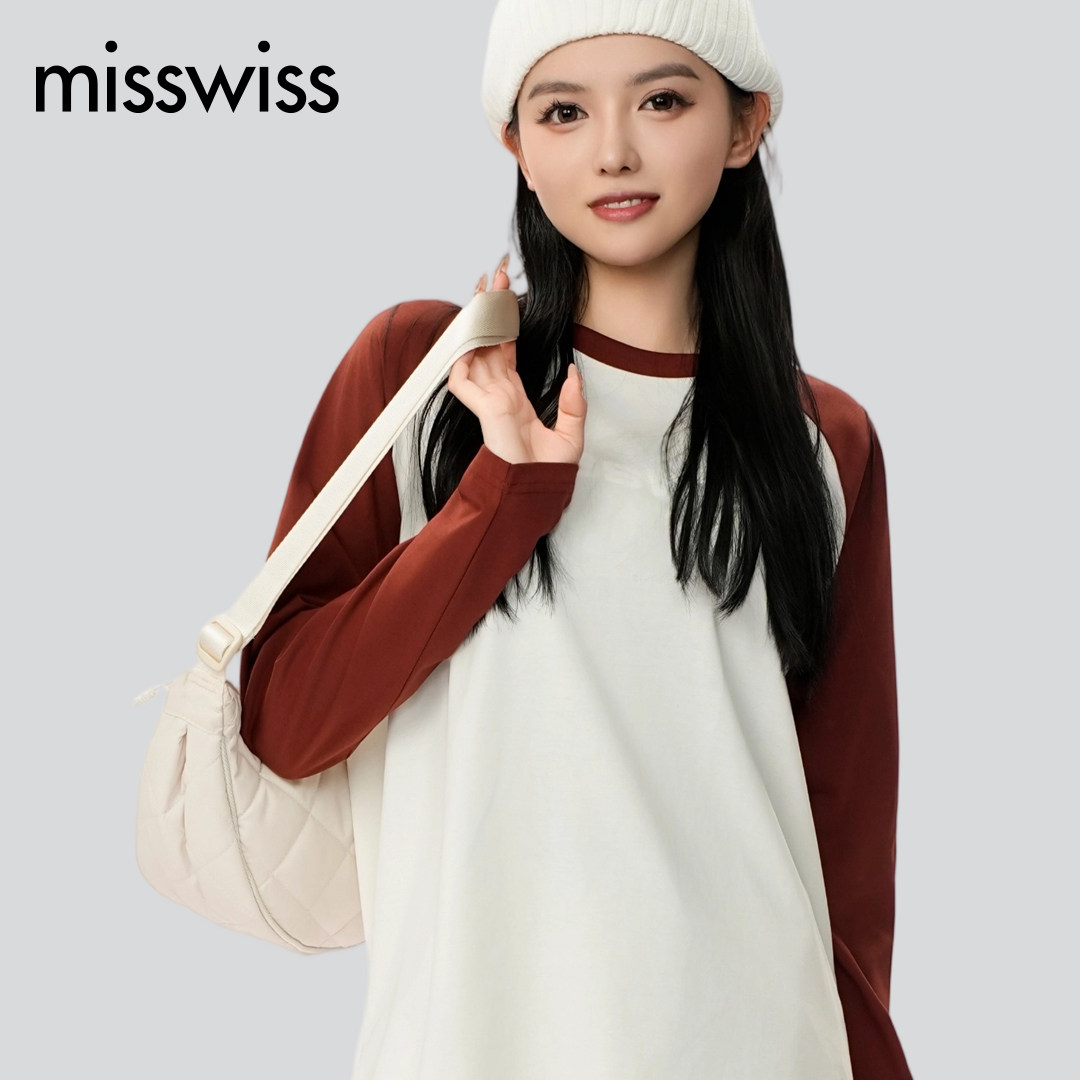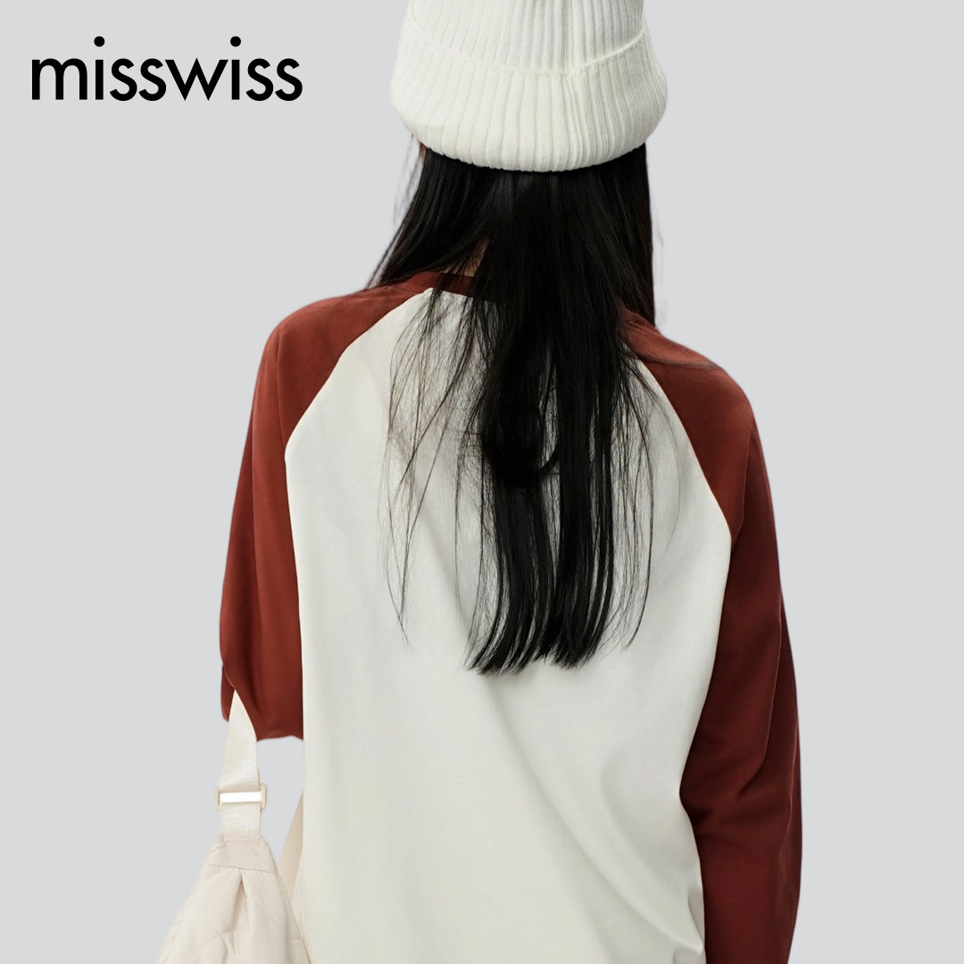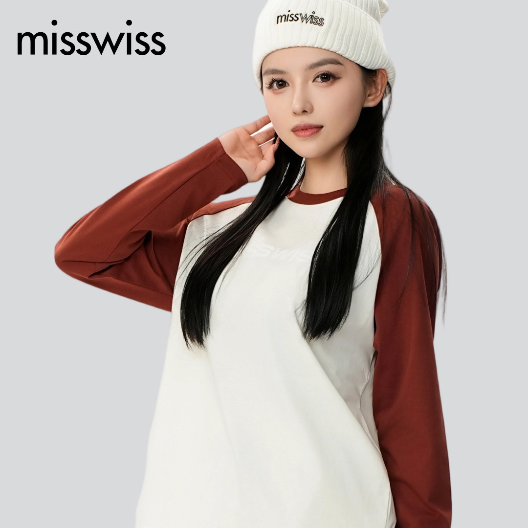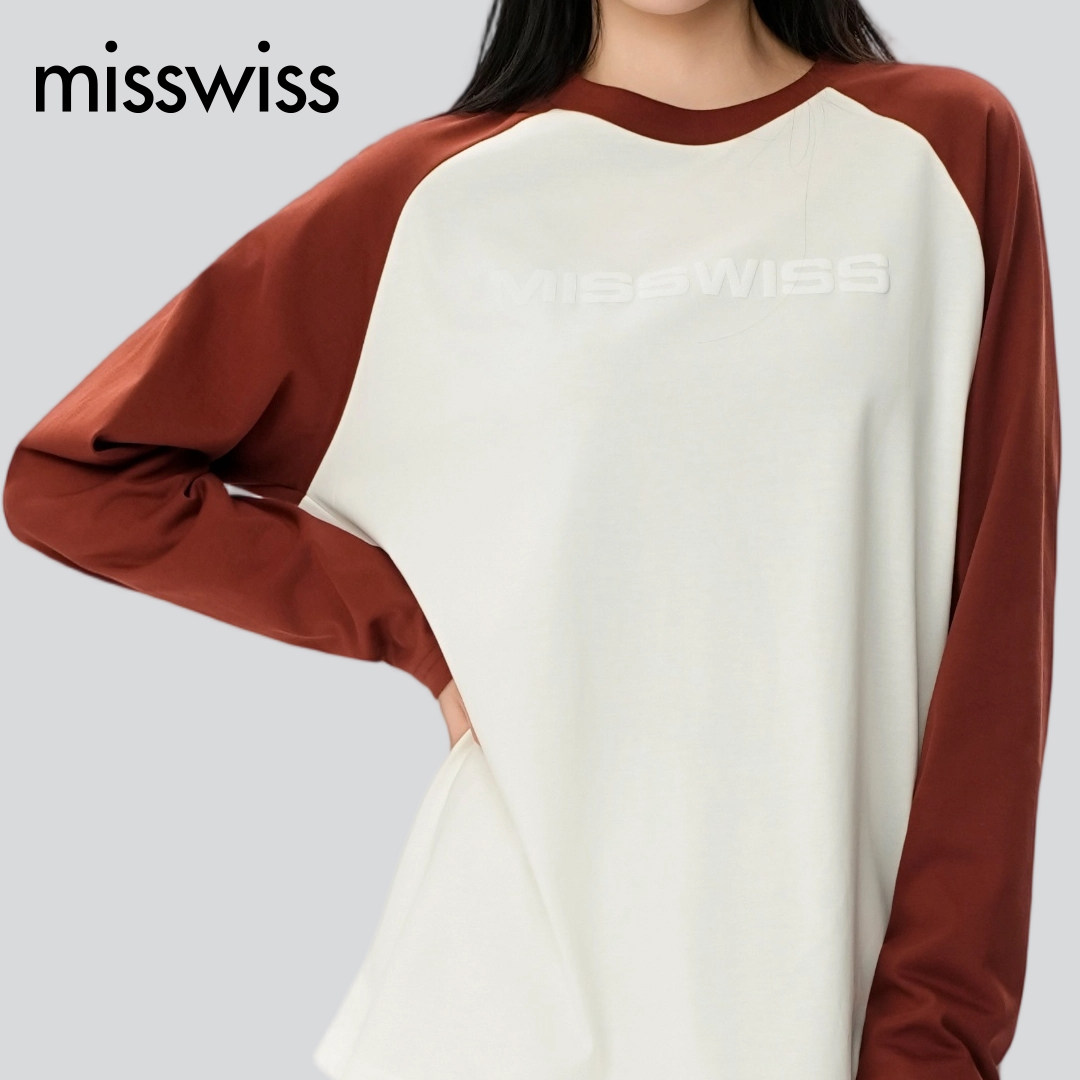 MissWiss(服饰)休闲宽松圆领长袖T恤女美式复古插肩袖情侣上衣