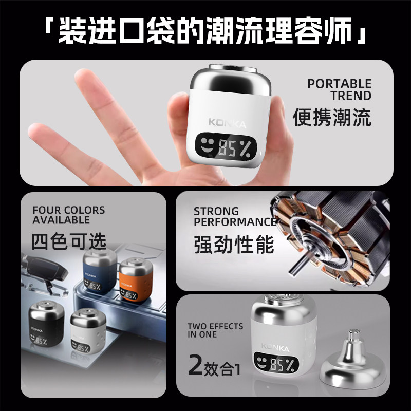 康佳剃须刀鼻毛修剪器二合一男士刮胡刀迷你便携刮胡子神器充电线