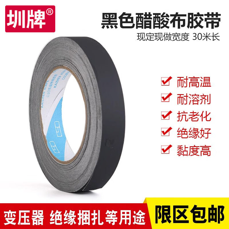 圳牌阻燃醋酸布胶带维修液晶屏耳机数据排线包扎黑色胶带高温汽车线束固定绝缘耐高温醋酸布白色胶带绝缘捆扎