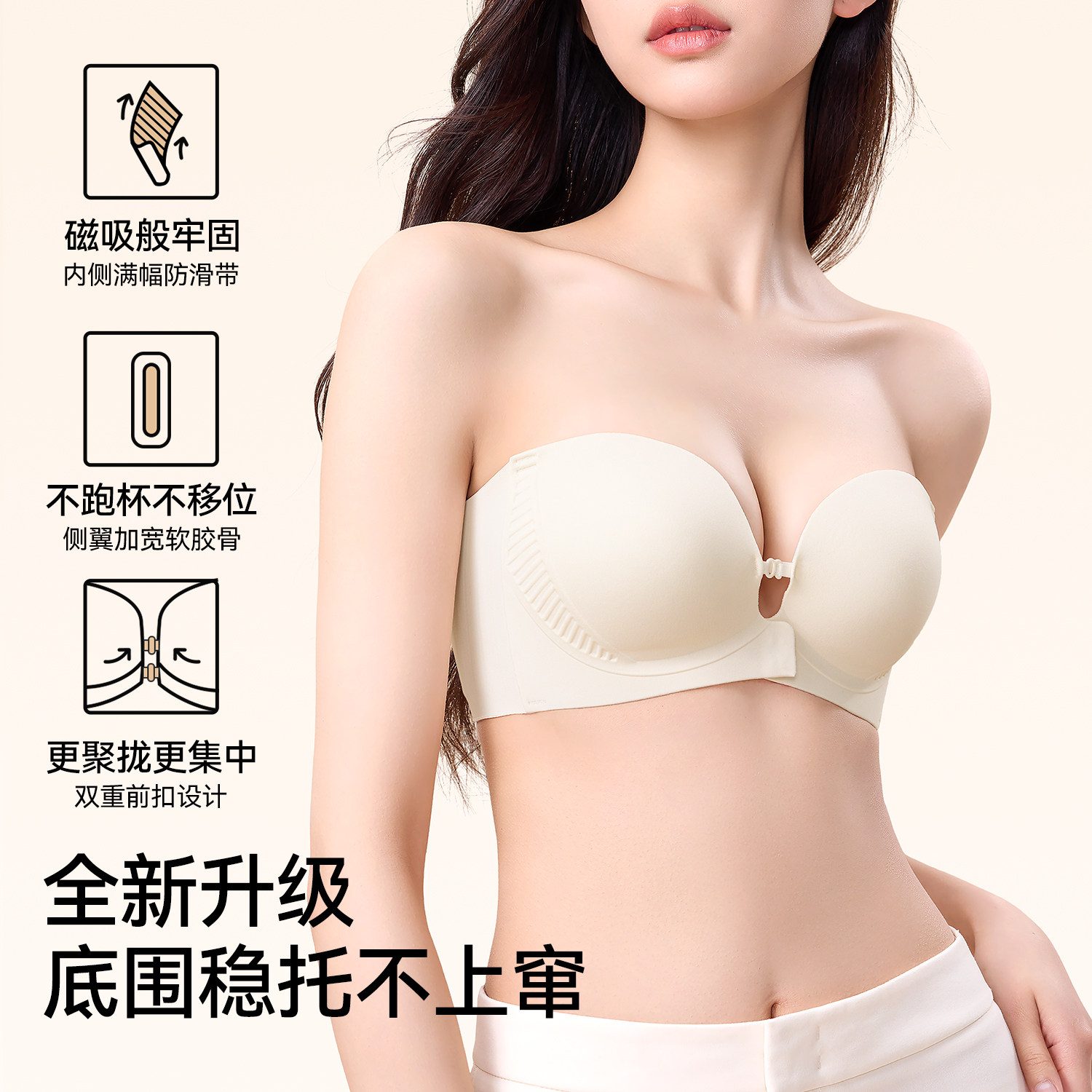 菇娘家稳稳杯无肩带内衣女大胸美背抹胸裹胸隐形无痕聚拢防滑文胸