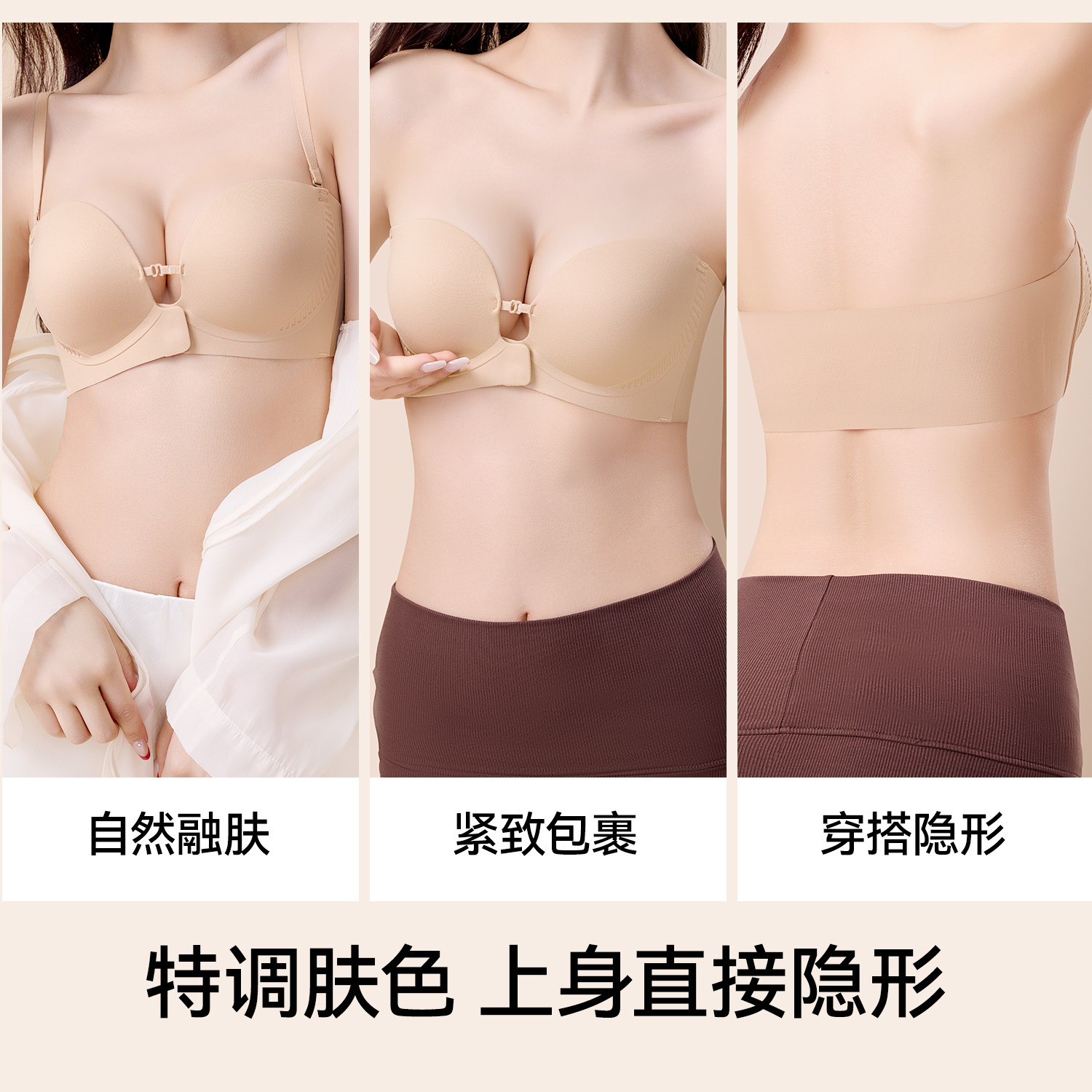都市丽人前扣无肩带内衣女小胸聚拢抹胸结婚纱隐形裹胸粉底液文胸