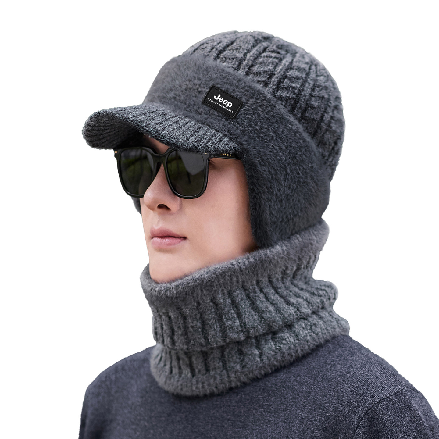 jeep吉普羊毛毛线帽子男士冬季户外骑行护耳保暖加厚防寒针织帽男