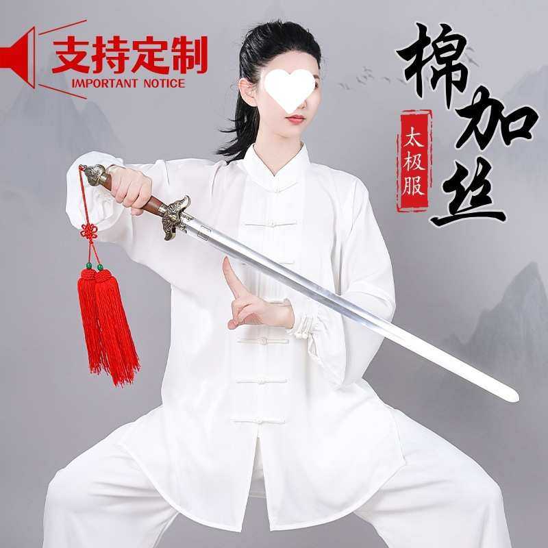 太极服新款棉加丝表演比赛长短袖春秋夏季女中国风中老年男练功服