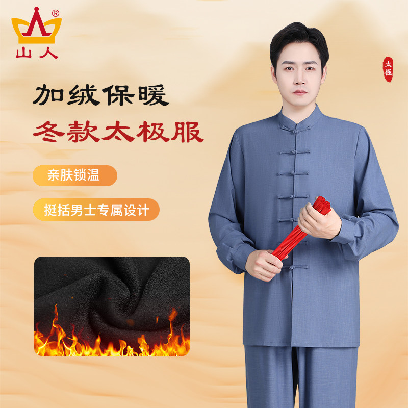 太极服男款2025新款秋冬加绒加厚太极拳练功服八段锦武术服装冬季