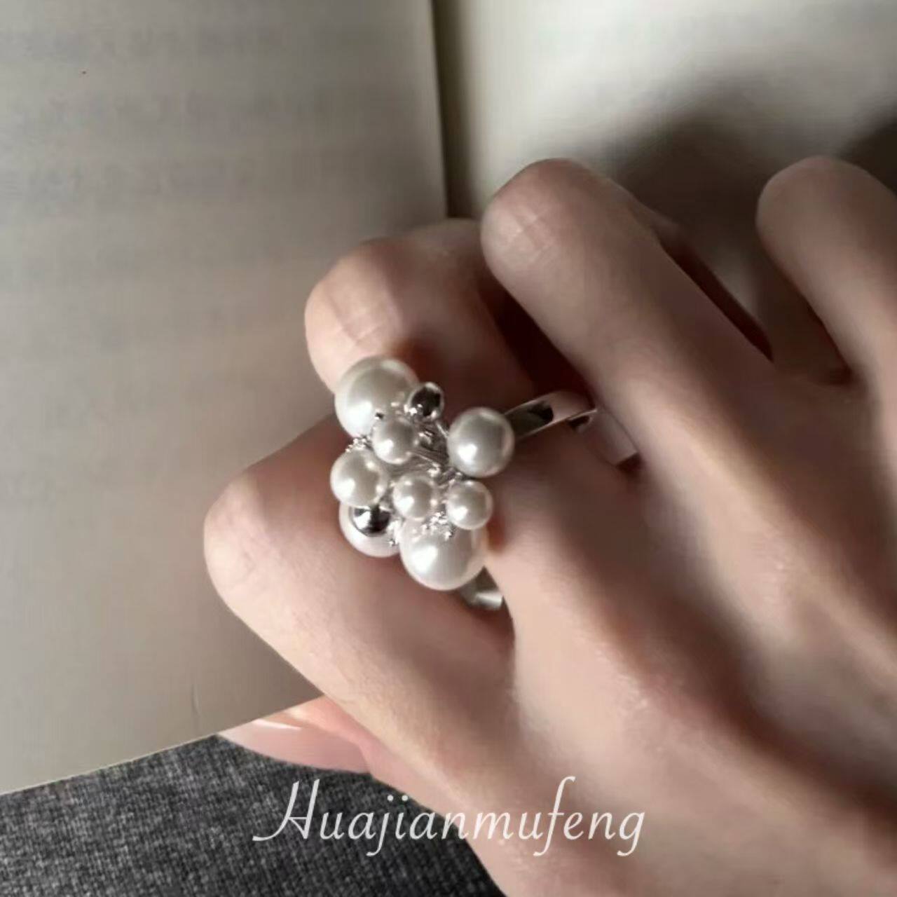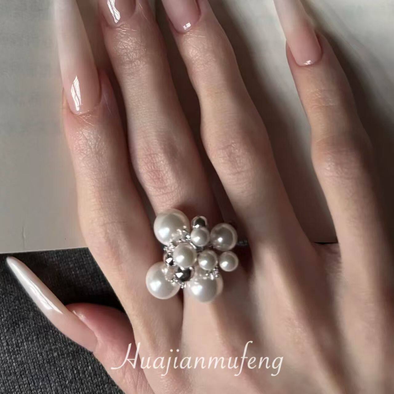 设计款!法式优雅闪钻戒指女精致贵气感食指戒开口指环叠戴手饰品