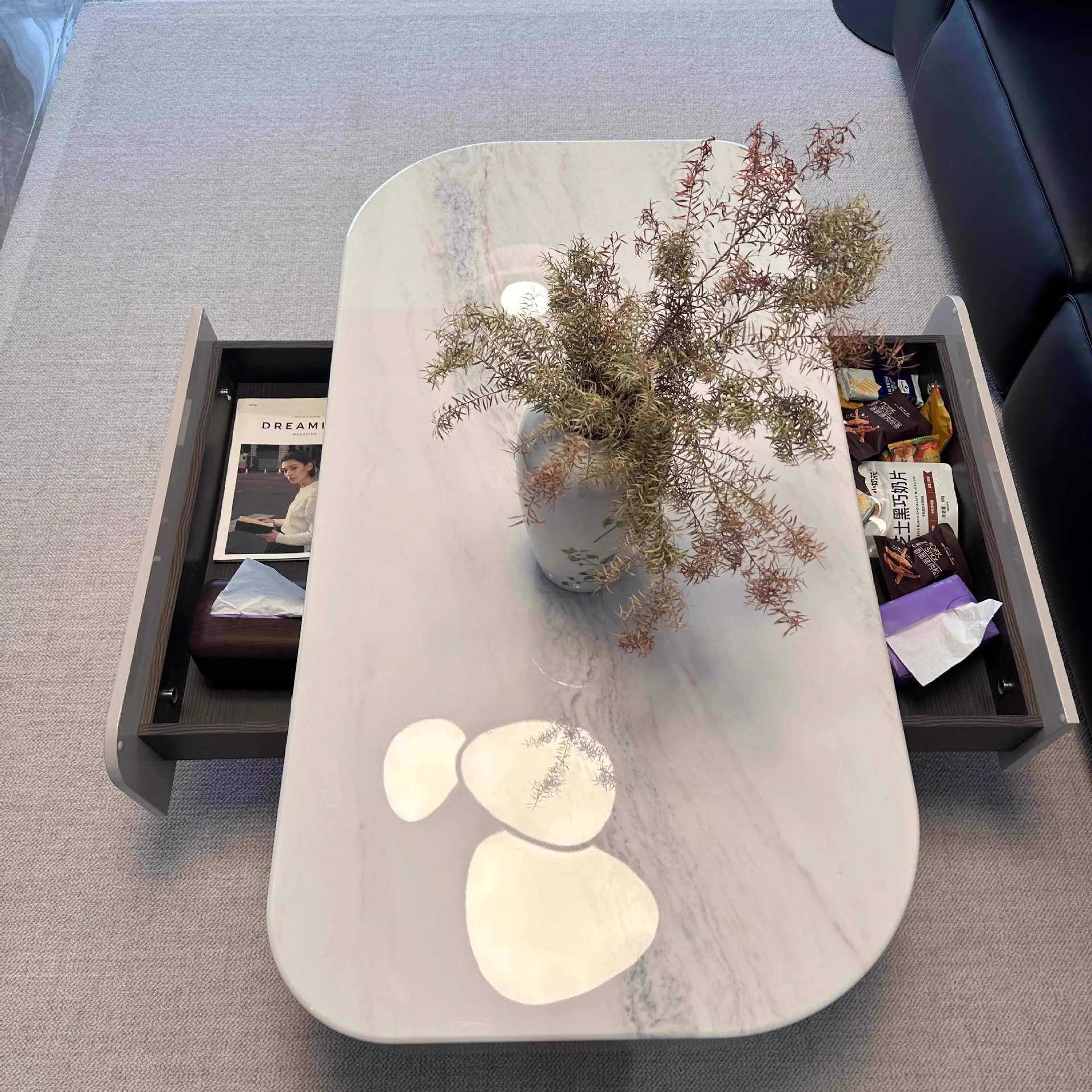 意式半夏茶几2025新款客厅家用小户型奶油风微晶石轻奢极简高级感