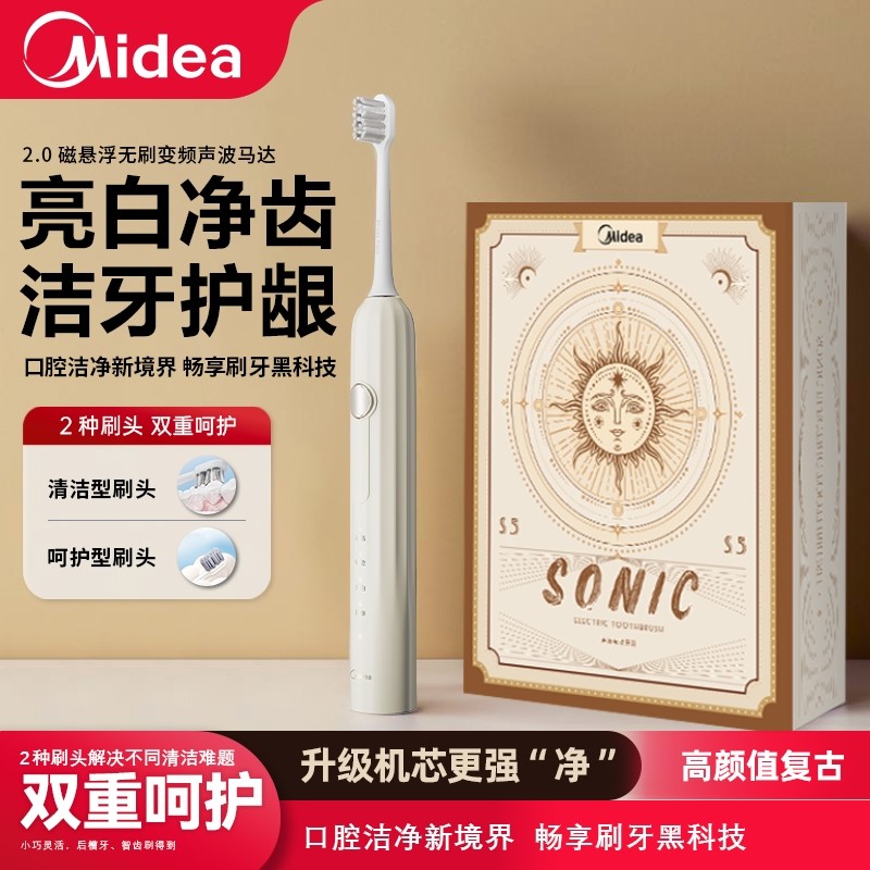 美的电动牙刷家用全自动软毛学生党情侣成人声波男女款充电式礼盒