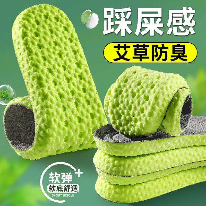 防臭鞋垫男款踩屎感女久站除臭吸汗运动专用软底高弹按摩舒适艾草