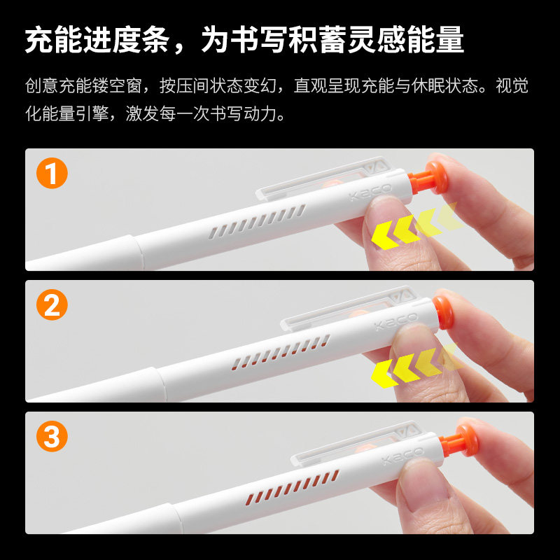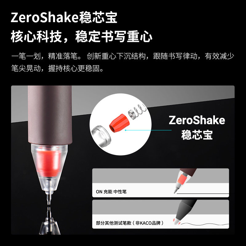 KACO ON充能中性笔学生专用0.5mm速干顺滑刷题考试笔按动水笔黑笔