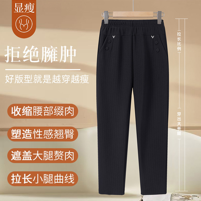 妈妈裤子春秋款松紧高腰弹力中老年女裤宽松大码直筒奶奶加绒长裤