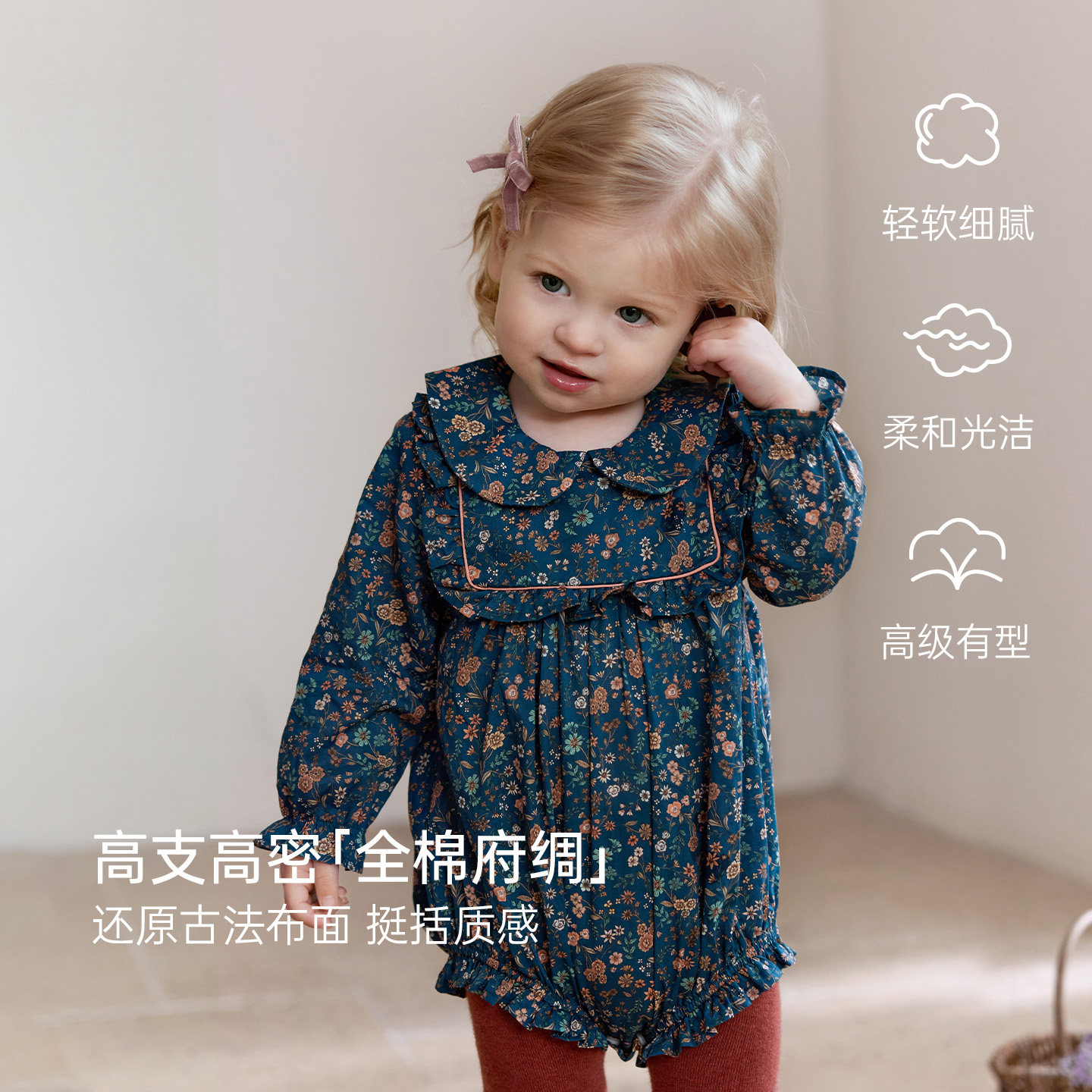 babylove婴儿包屁衣纯棉春秋碎花洋气女宝宝三角哈衣爬服卢浮宫韵