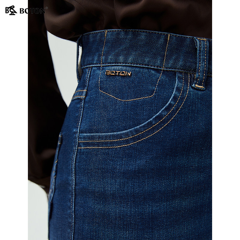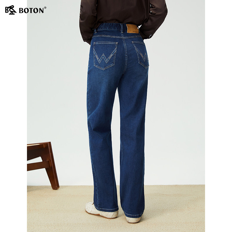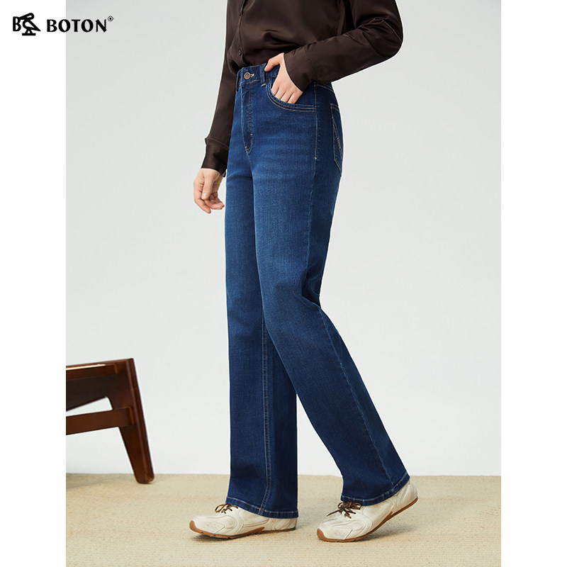 波顿秋季女士宽松直筒牛仔裤高腰弹力修身牛仔休闲长裤女2025新款