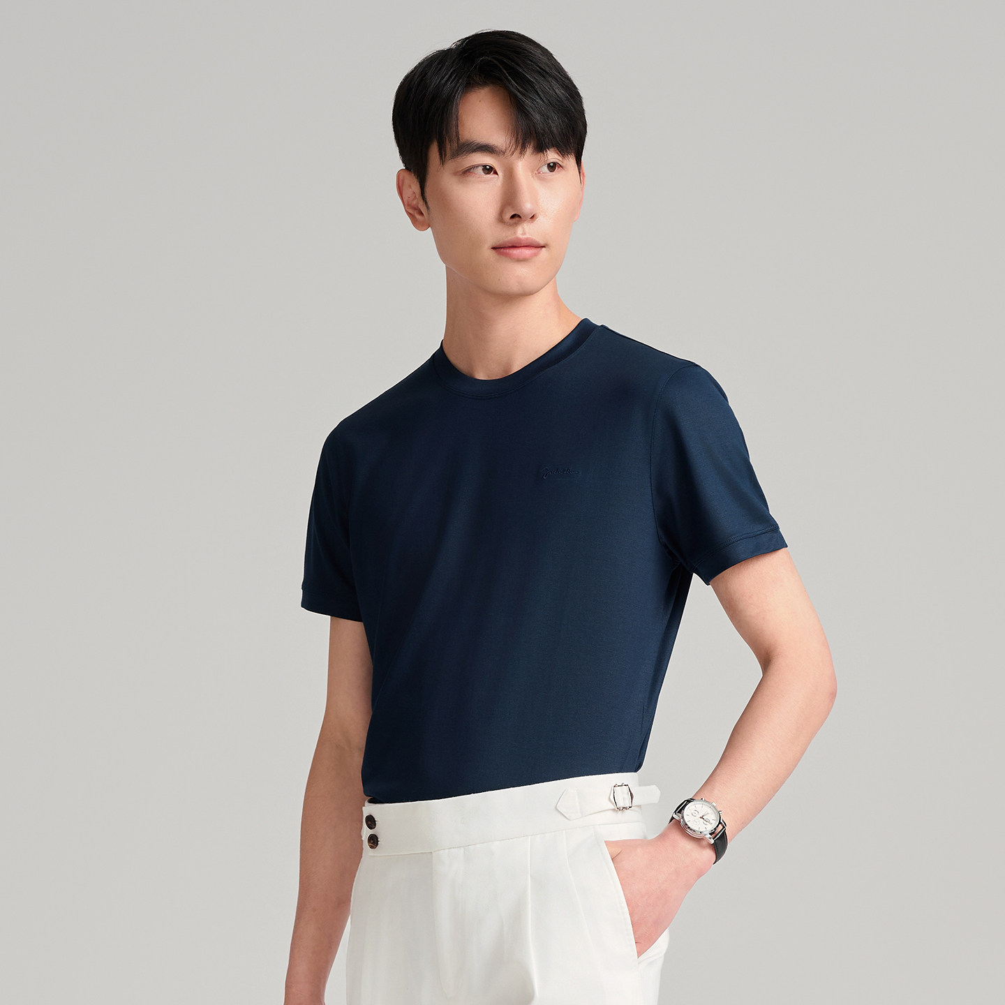 [铜氨丝]Jodoll乔顿夏季纯色圆领短袖T恤男士通勤休闲体恤衫