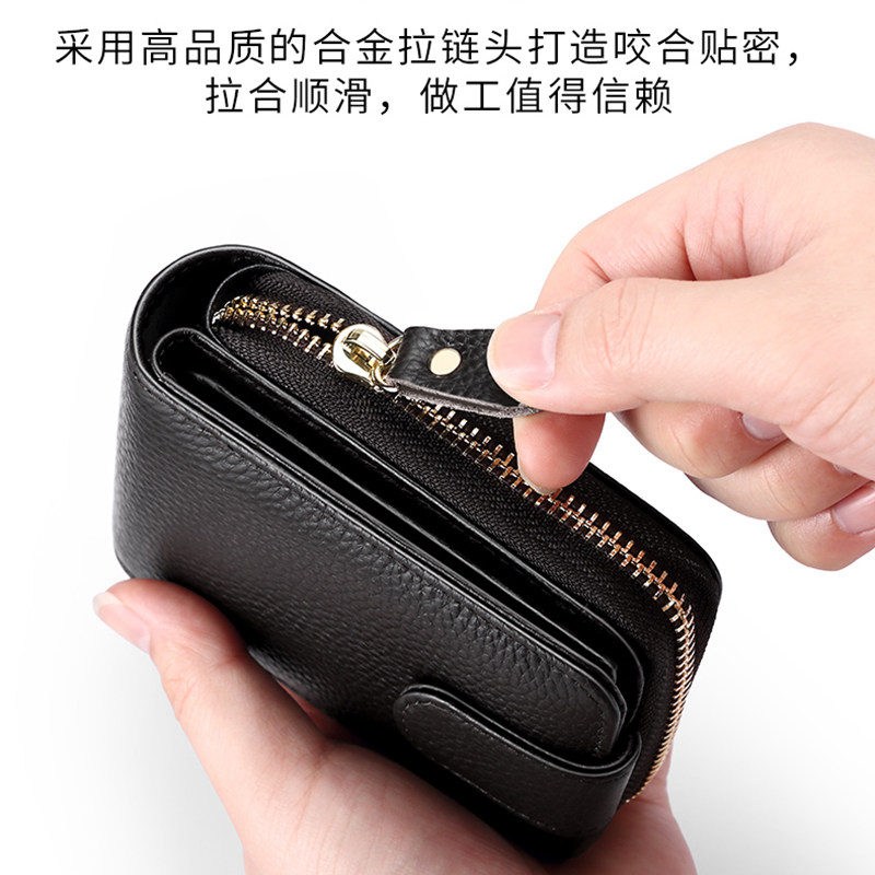 稻草人卡包女士新款证件女式牛皮小巧真皮拉链钱夹小众银行卡钱包