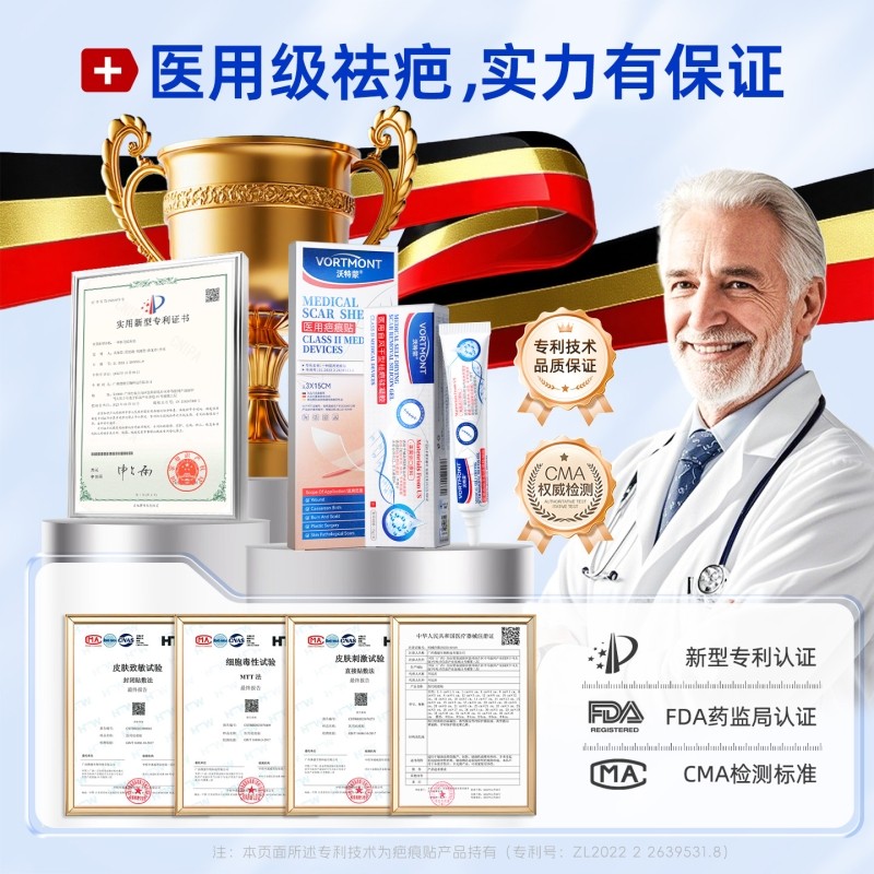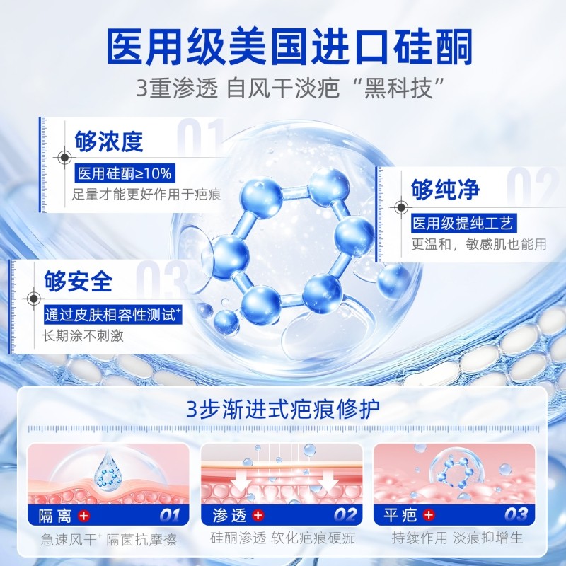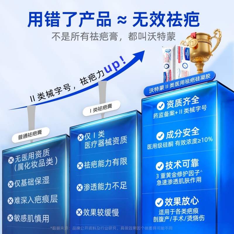 沃特蒙医用硅酮凝胶祛疤医用疤痕修复除疤膏淡化增生凸起去除疙瘩
