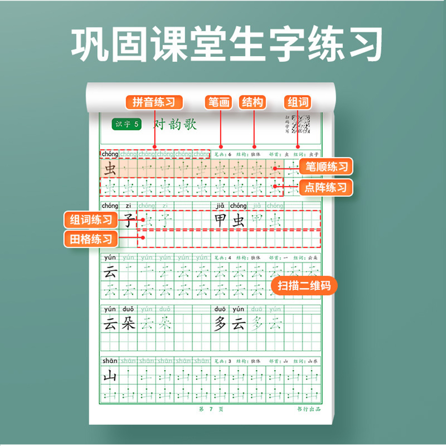 卷面书写同步练字帖小学生三四五六一二年级下册方格横线组词古诗