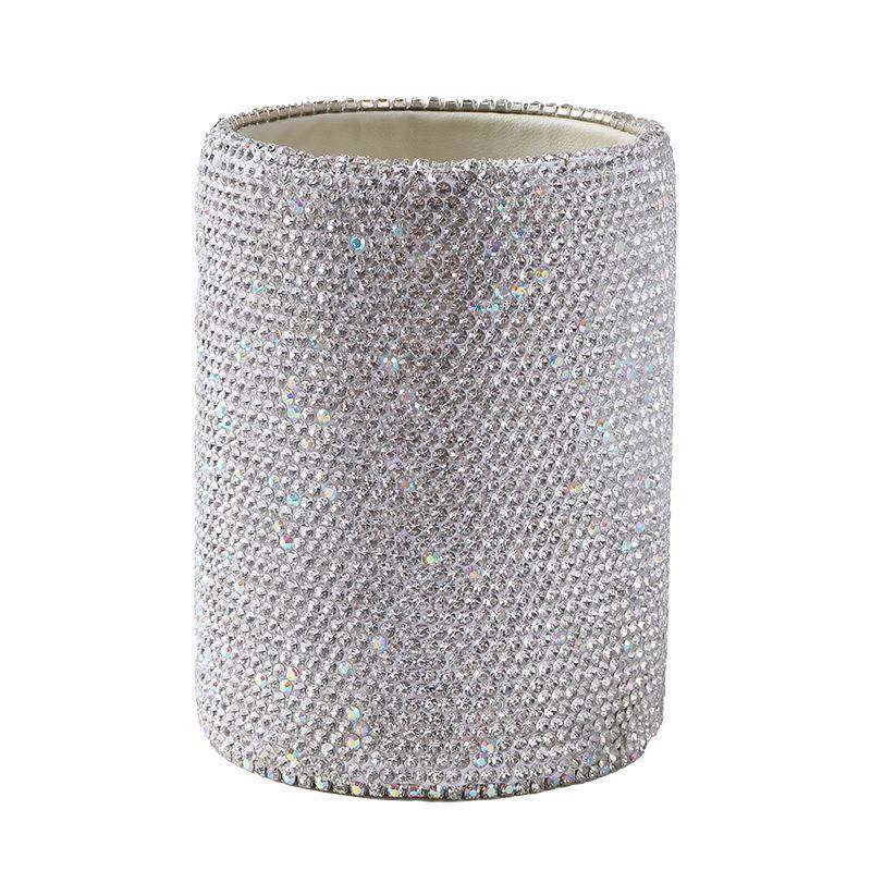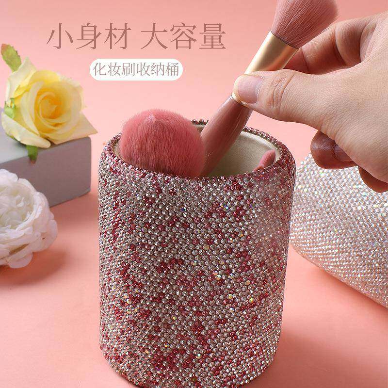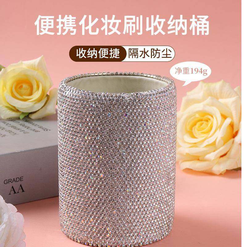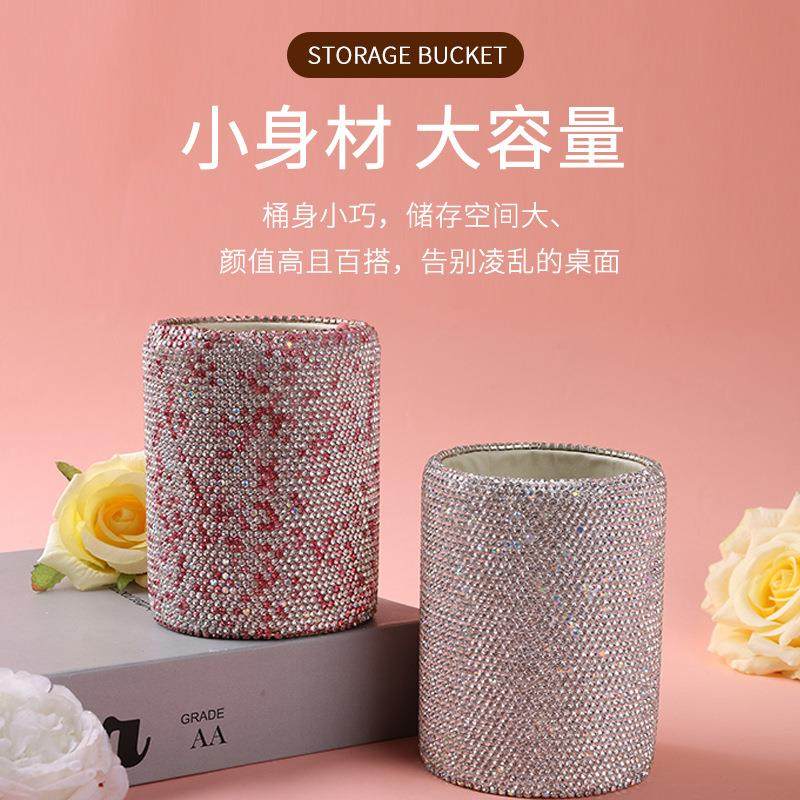 镶钻轻奢创意桌面文具收纳桶化妆刷梳子桌面水晶收纳摆件办公笔筒