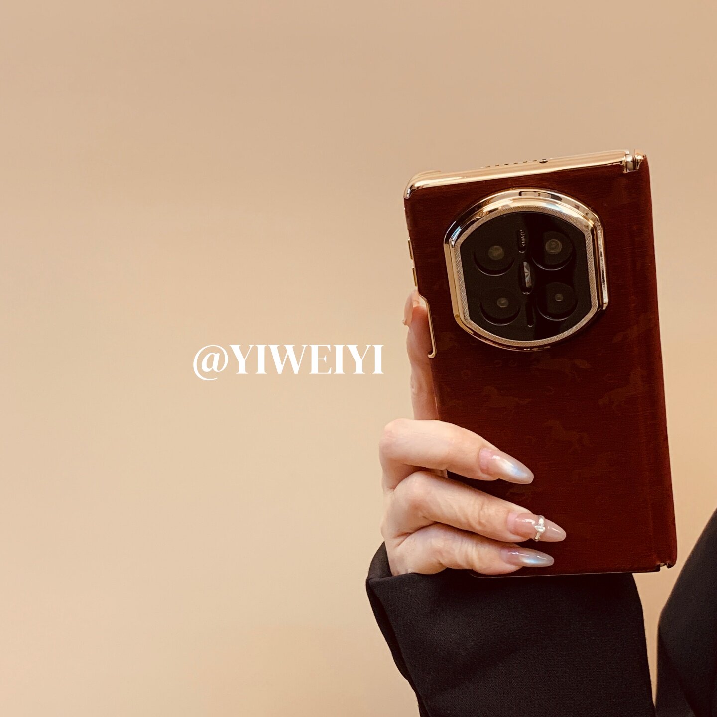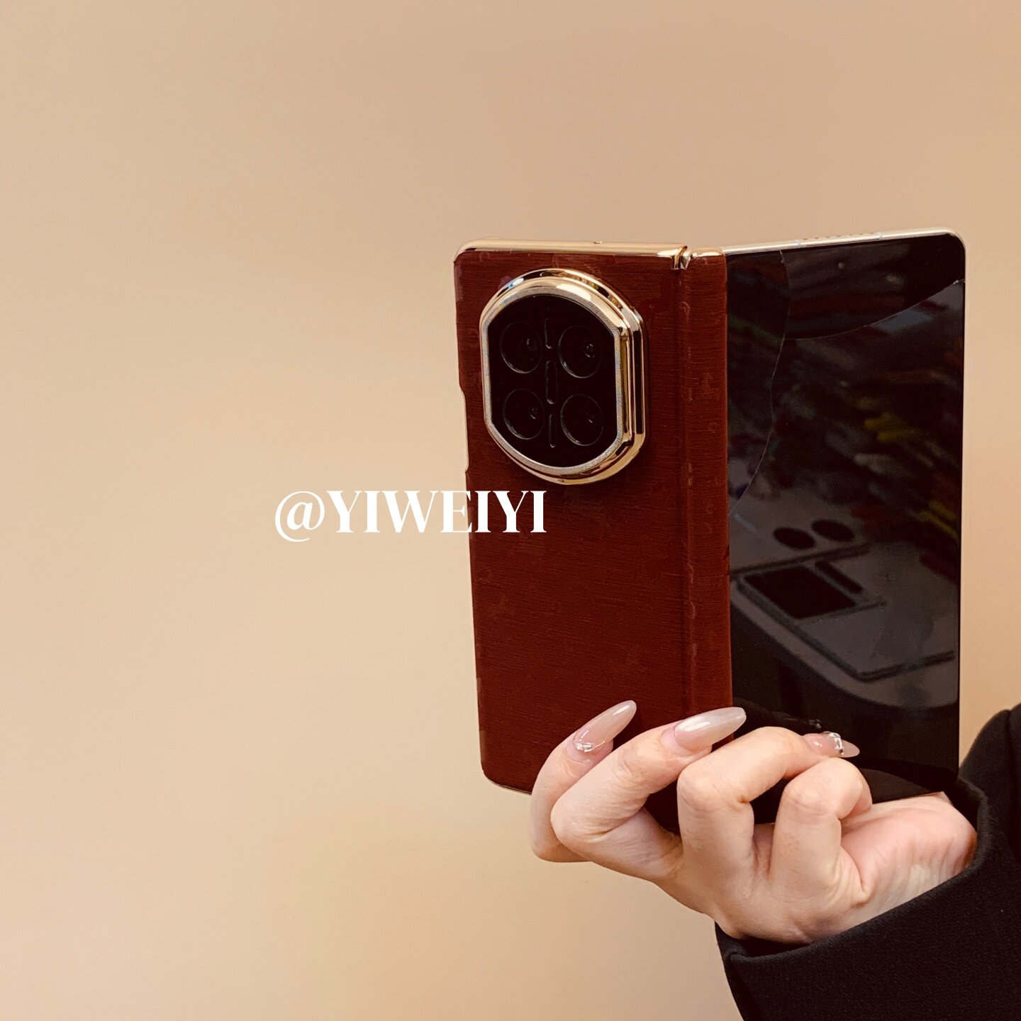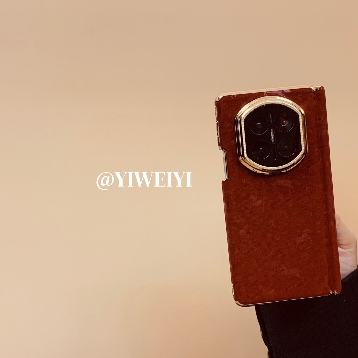 折叠屏手机壳双中轴复古风酒红色万马奔腾