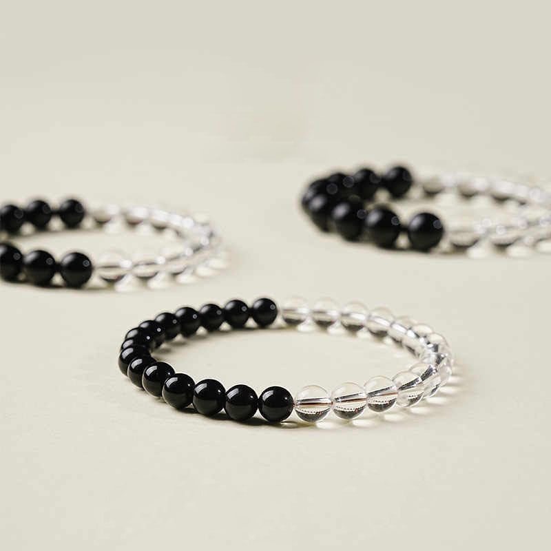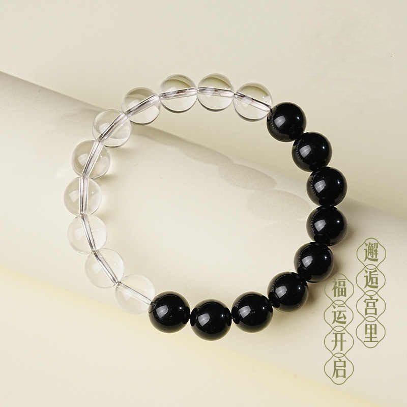 VZZS白水晶手链黑曜石手串凤凰石女款好运收藏级佛珠男士冷门饰品