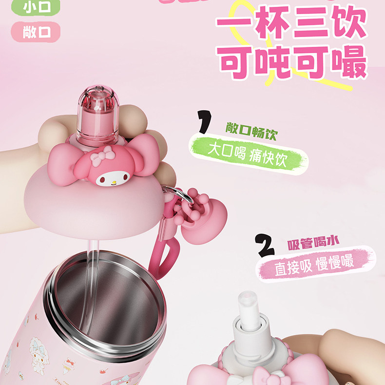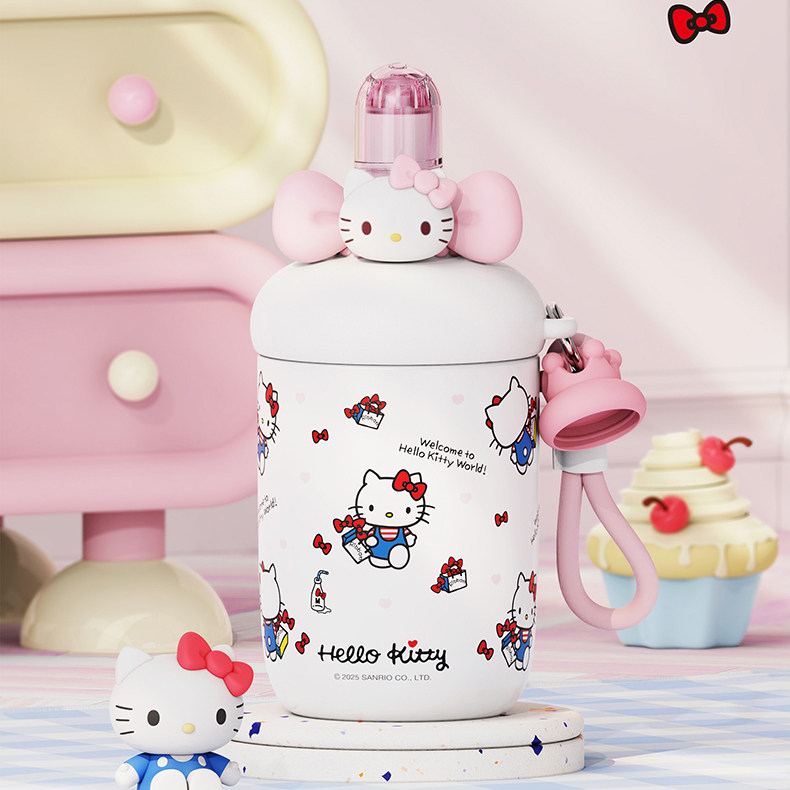 艾可思HelloKitty保温杯女高颜值不锈钢吸管水杯外出携带随行杯子