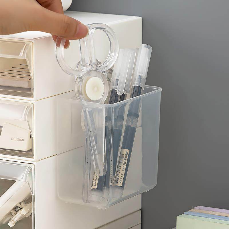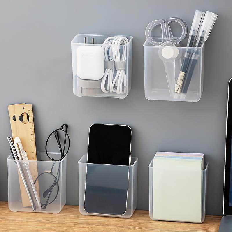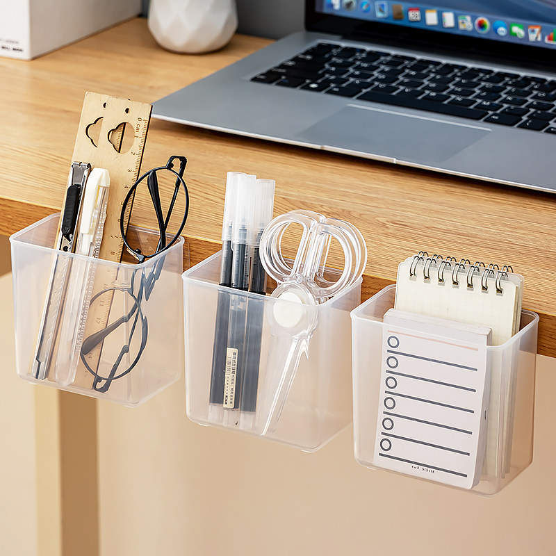 壁挂笔筒桌面文具收纳盒透明学生笔架办公室剪刀便签数据线分格盒