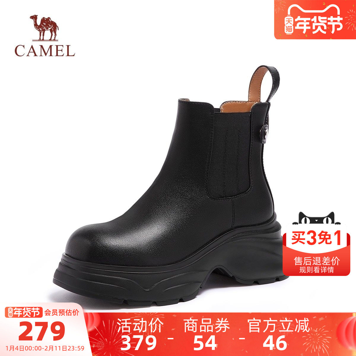 骆驼女鞋2025冬季新款厚底显高休闲加绒烟筒靴切尔西靴子马丁靴女