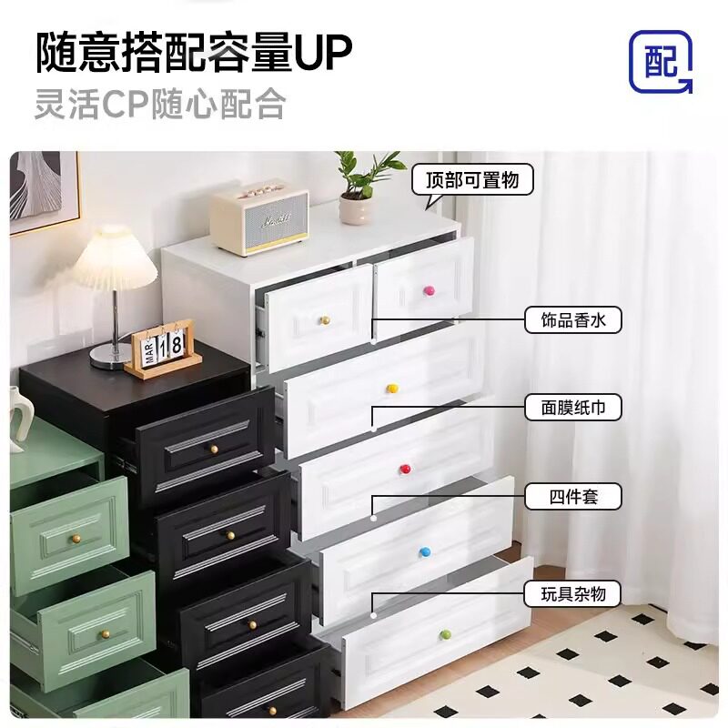 家用钢制斗柜卧室无甲醛抽屉柜床尾置物柜客厅落地多层收纳储物柜