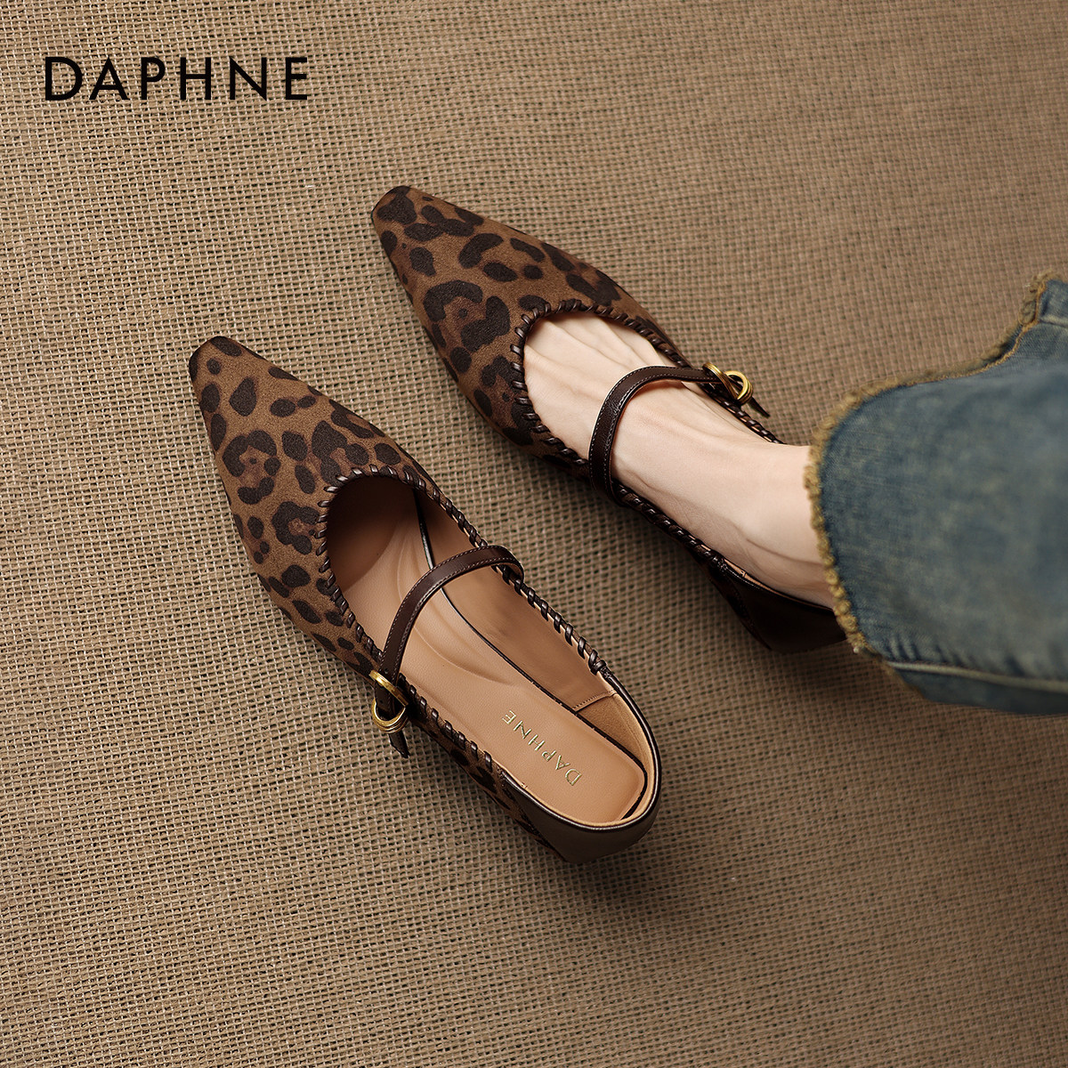 达芙妮尖头细跟豹纹小单鞋2026新款女士女款秋季法式玛丽珍女鞋子