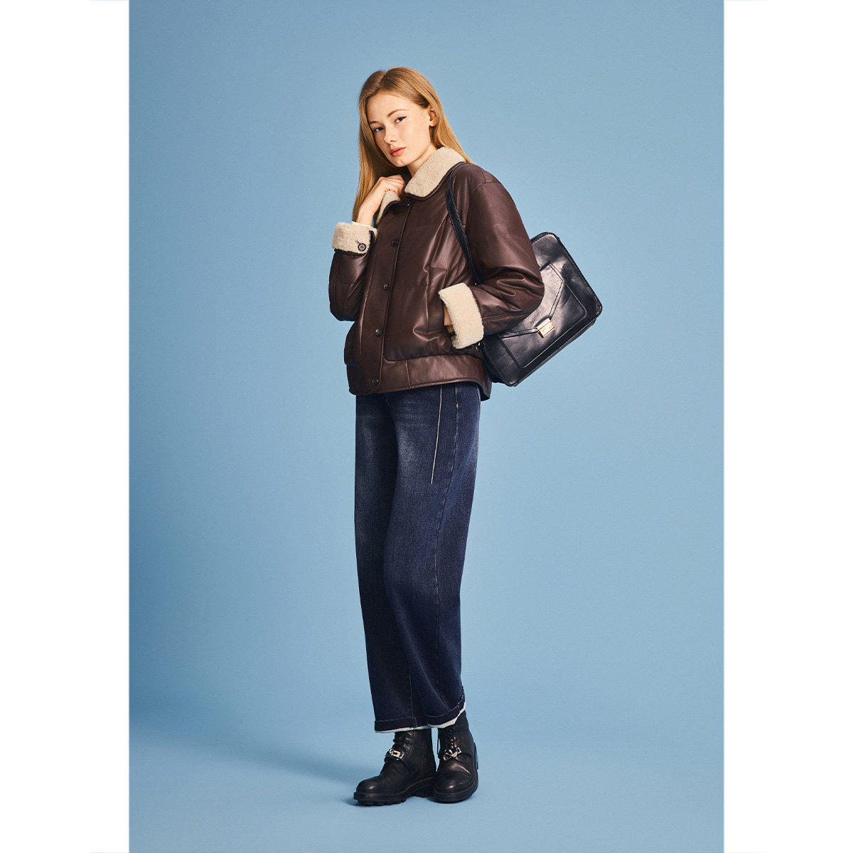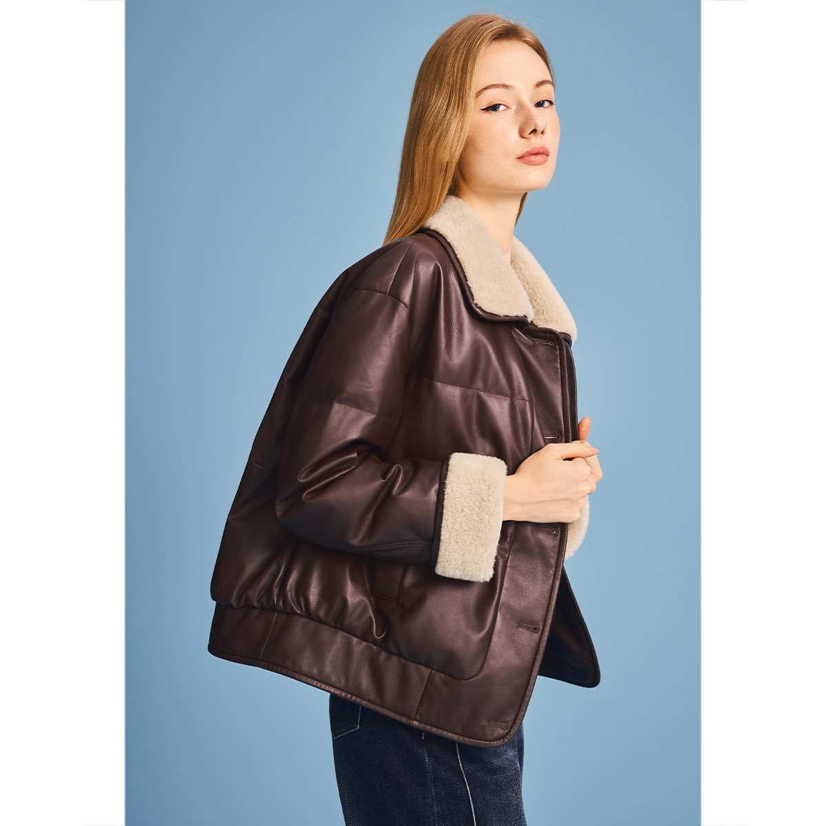 诗篇专选棕调复古休闲羊毛领短款宽松皮羽绒2026春季新款