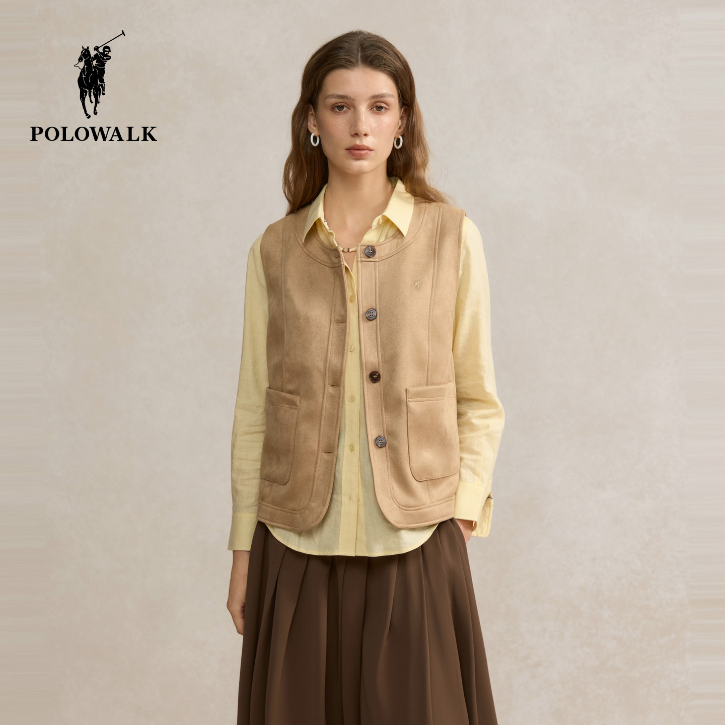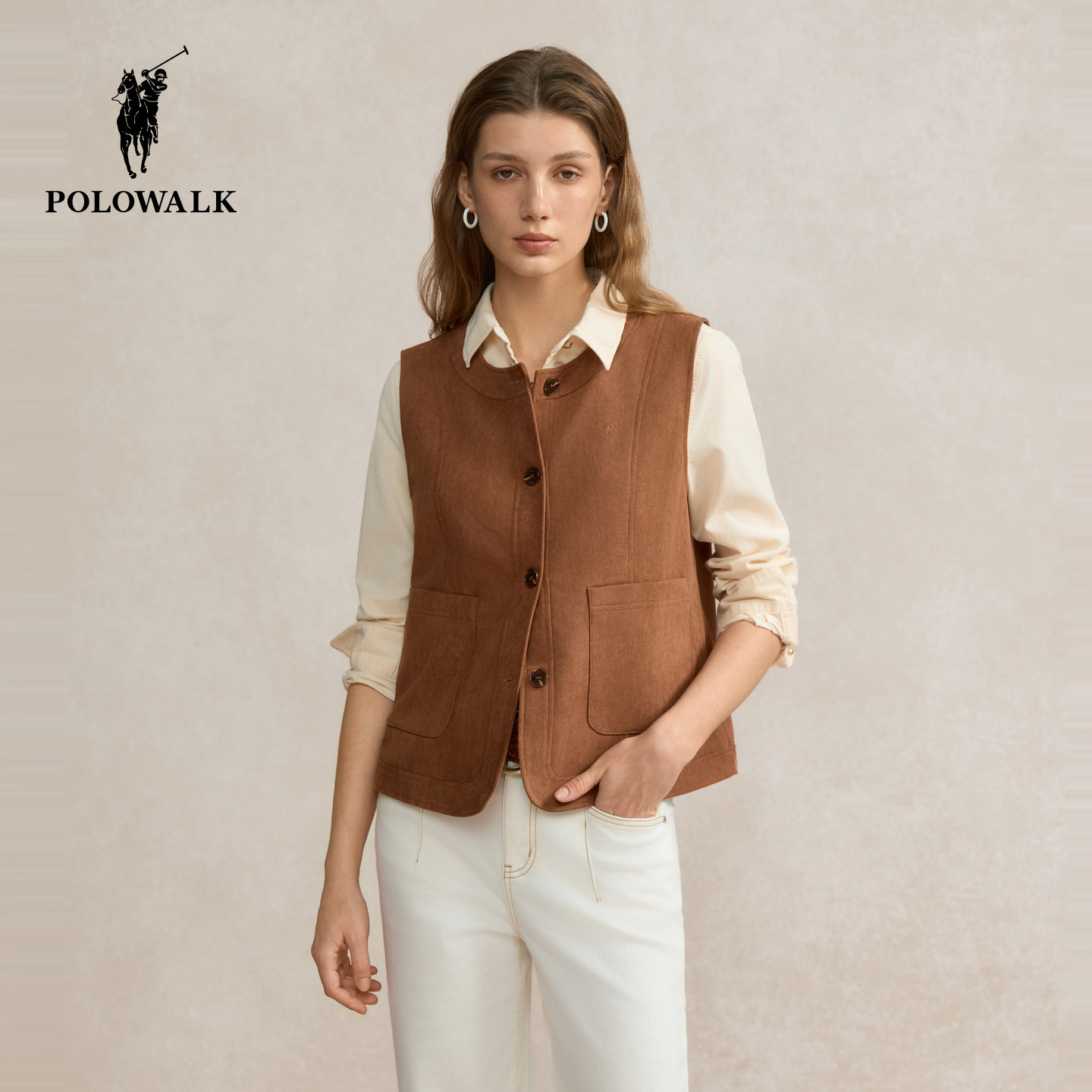 POLOWALK女士马甲2026春季新款背心复古老钱风圆领上衣春装