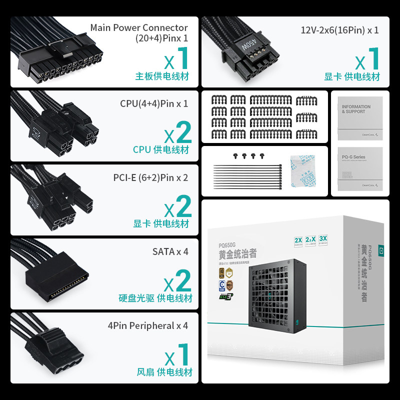 九州风神电源PQG系列650w750w850w1000w金牌pcie5.1支持50系显卡