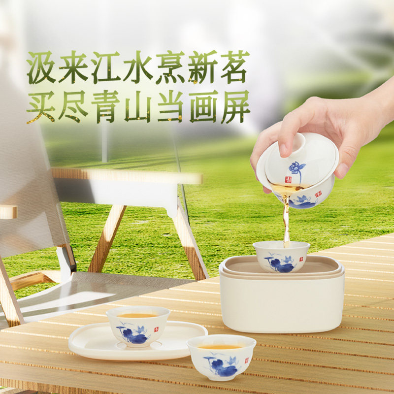 旅行茶具套装 小套便携 茶杯盖碗干泡台一体