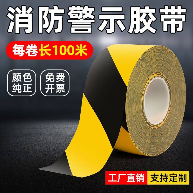 【大卷100米】黄黑警示胶带pvc地板胶带隔离贴纸车间定位划线地标