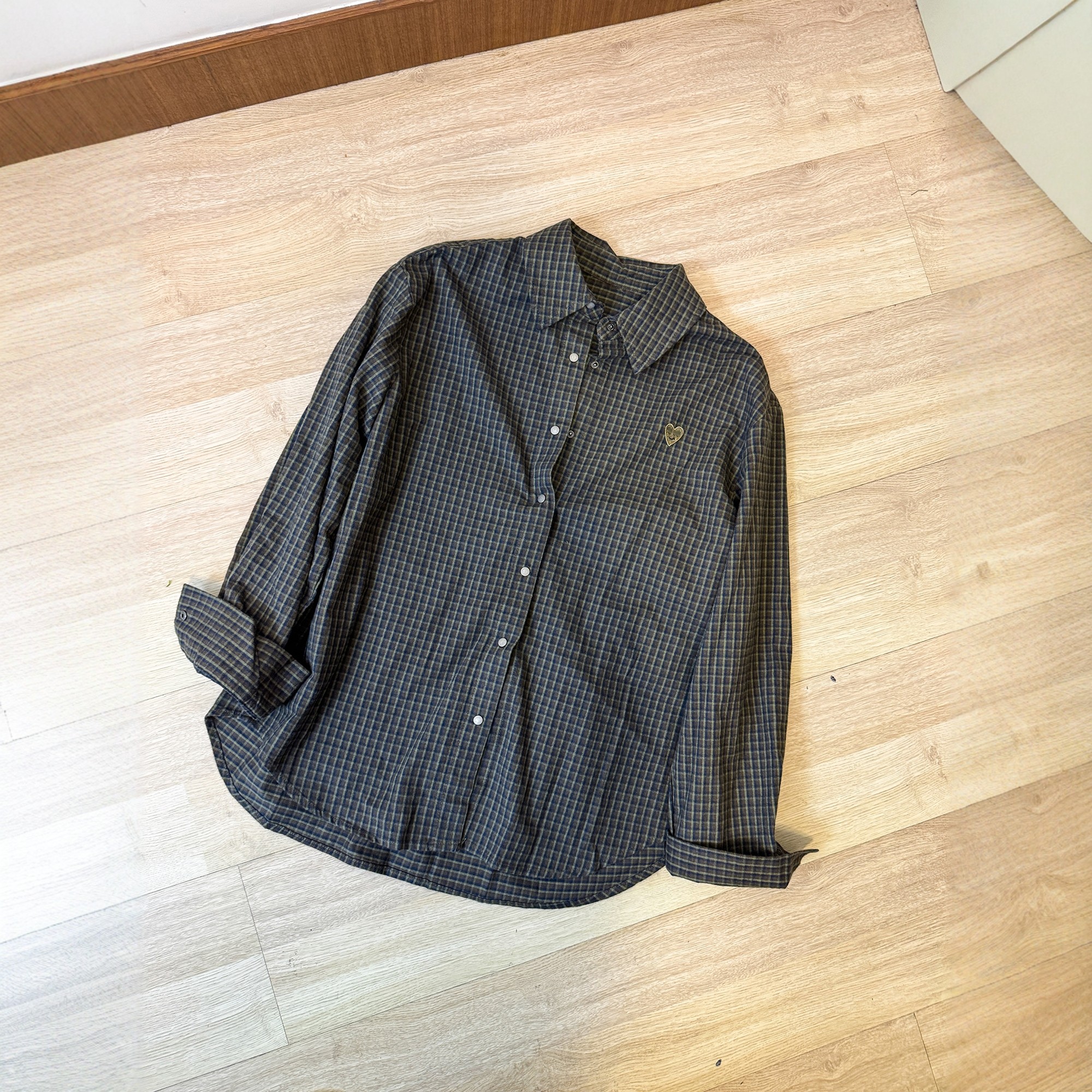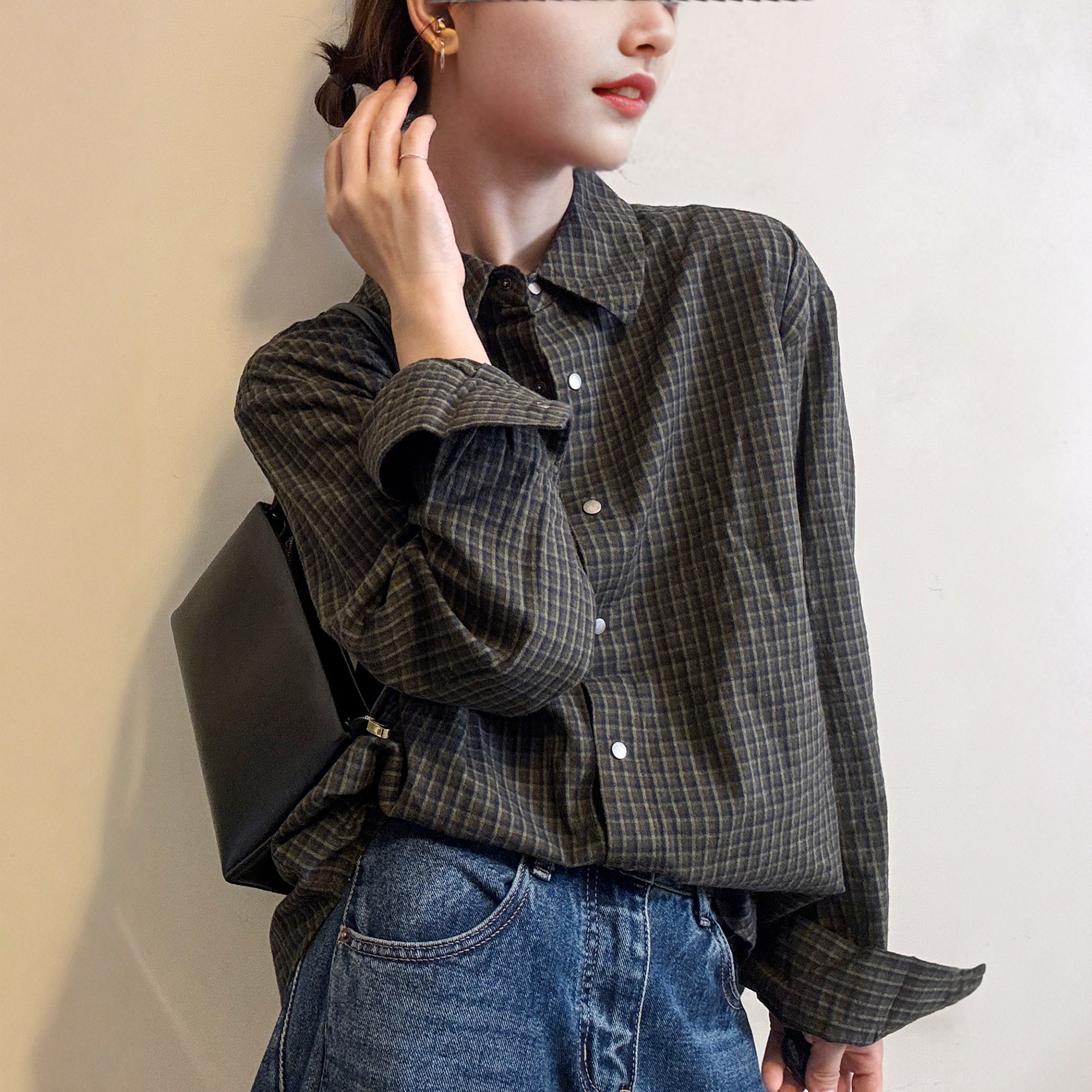 爱心刺绣磨毛格子衬衫女欧洲站2025冬装新款欧货女装时尚打底衫潮