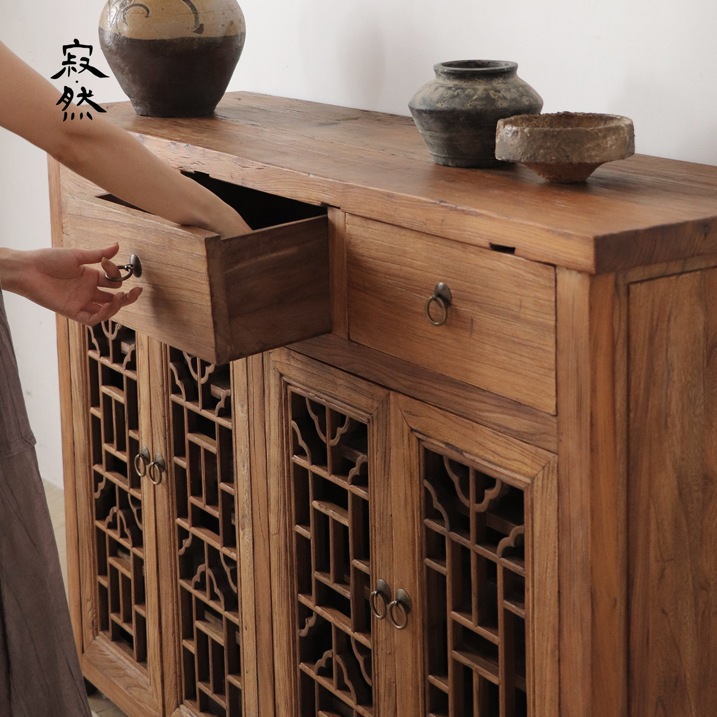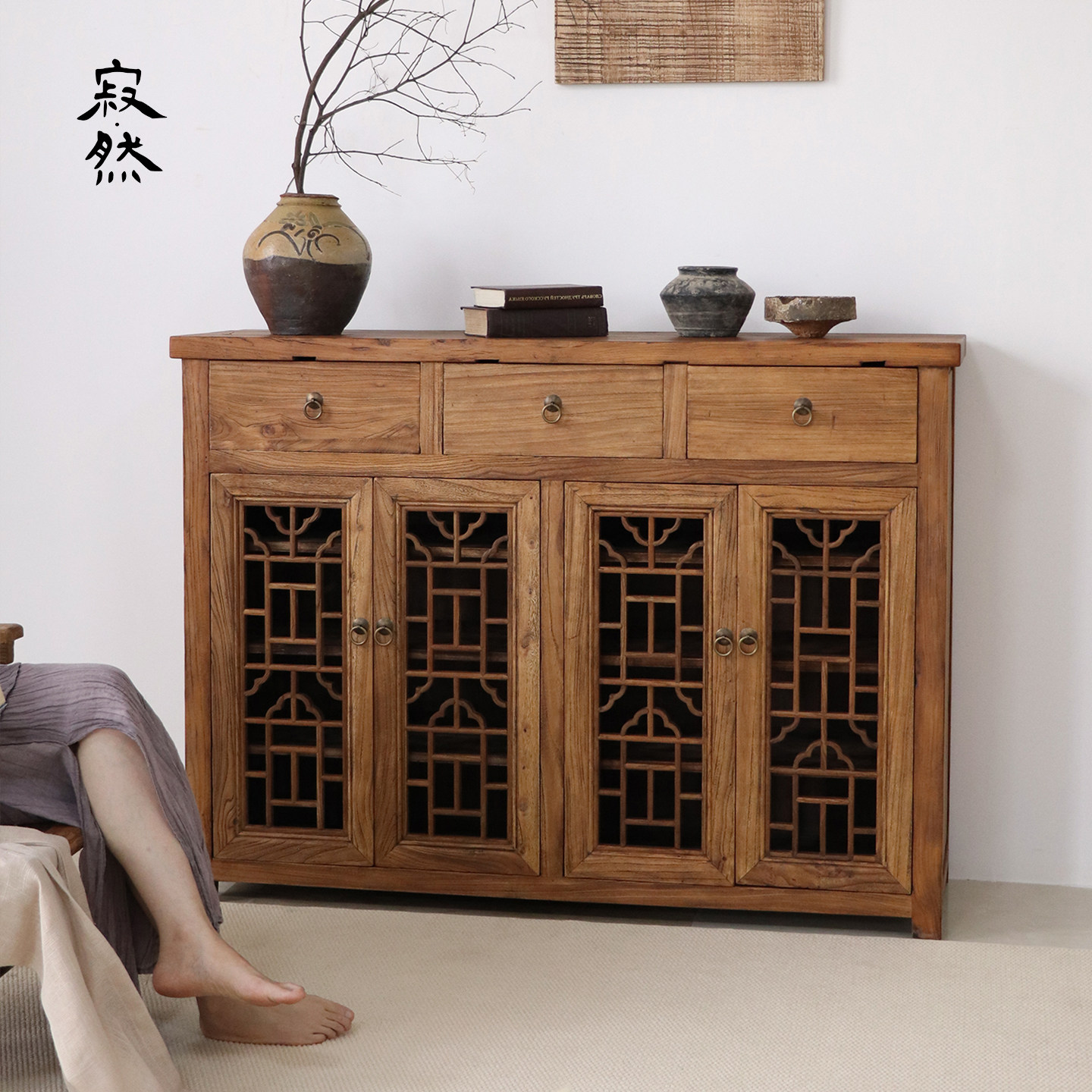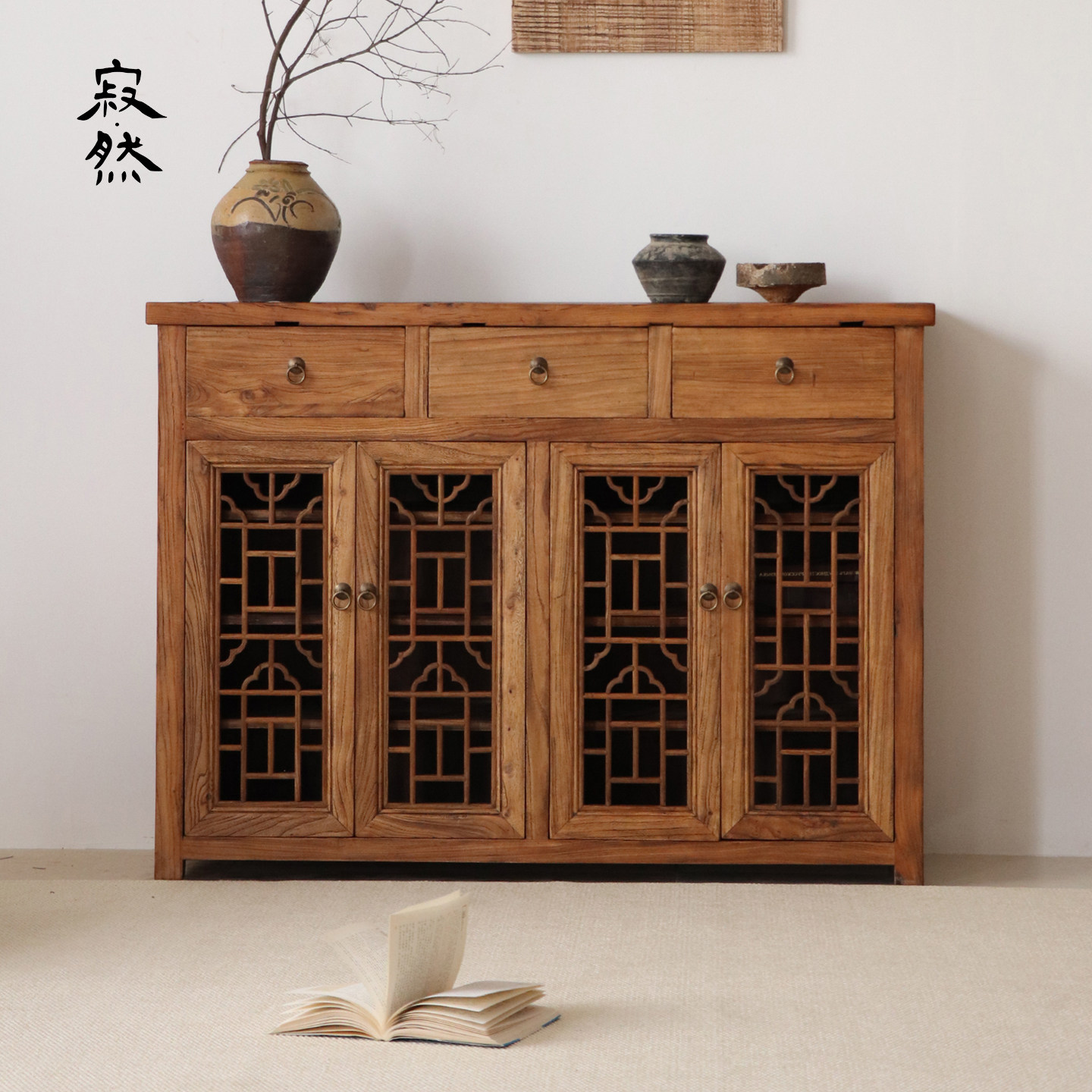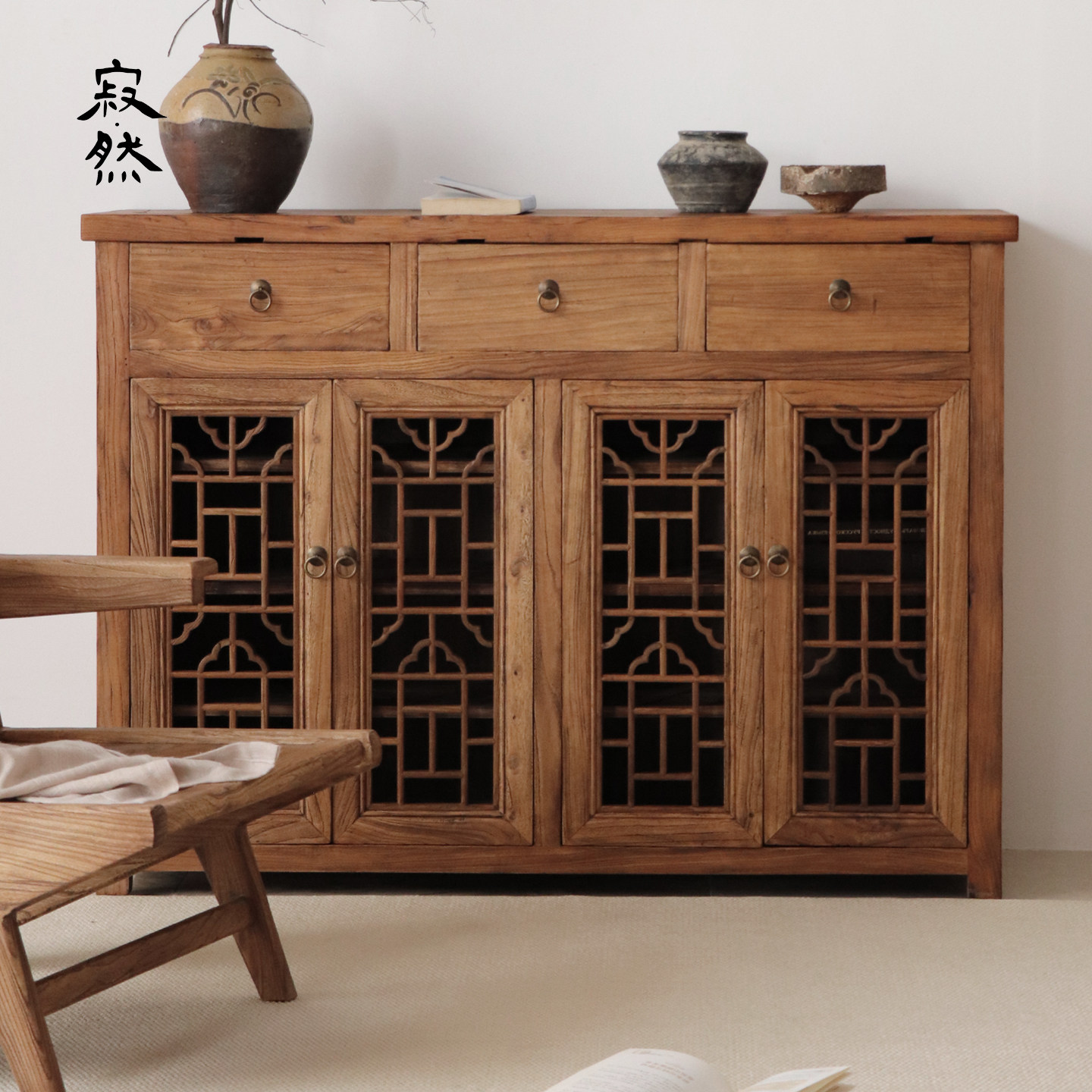 寂然 |侘寂风实木餐边柜中式复古储物柜客厅收纳柜玄关实木墙边柜